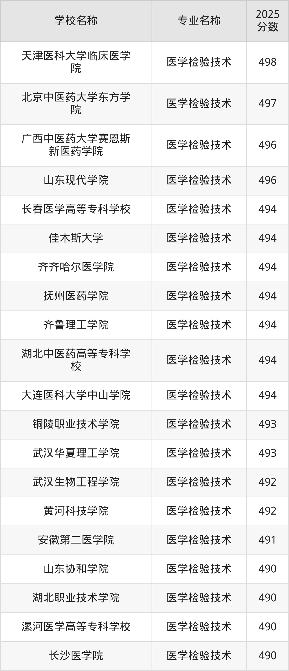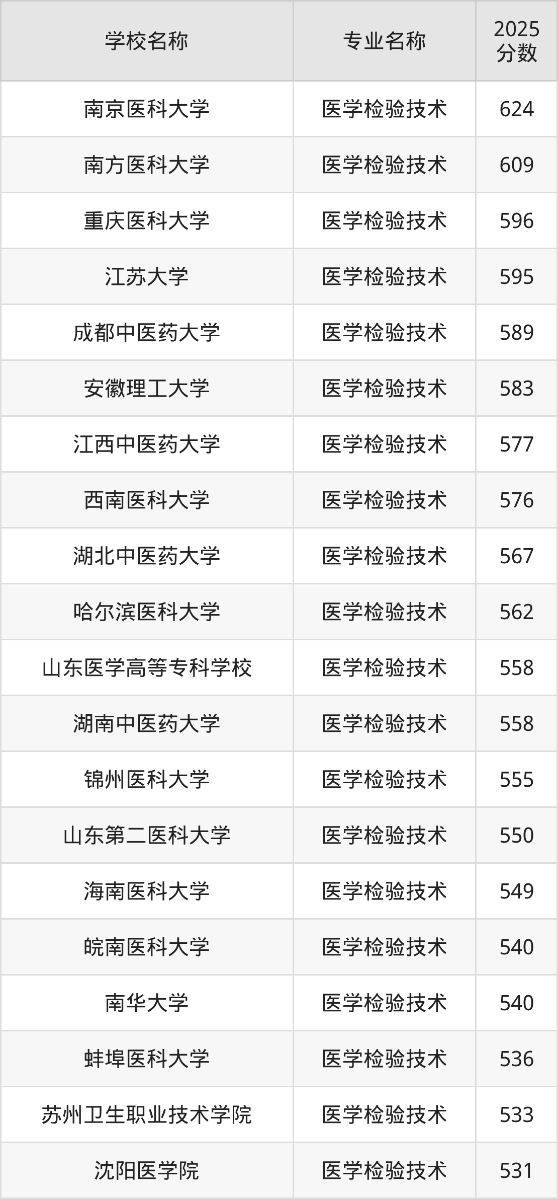 | 温州医科大学 | 医学检验技术 | 595 |