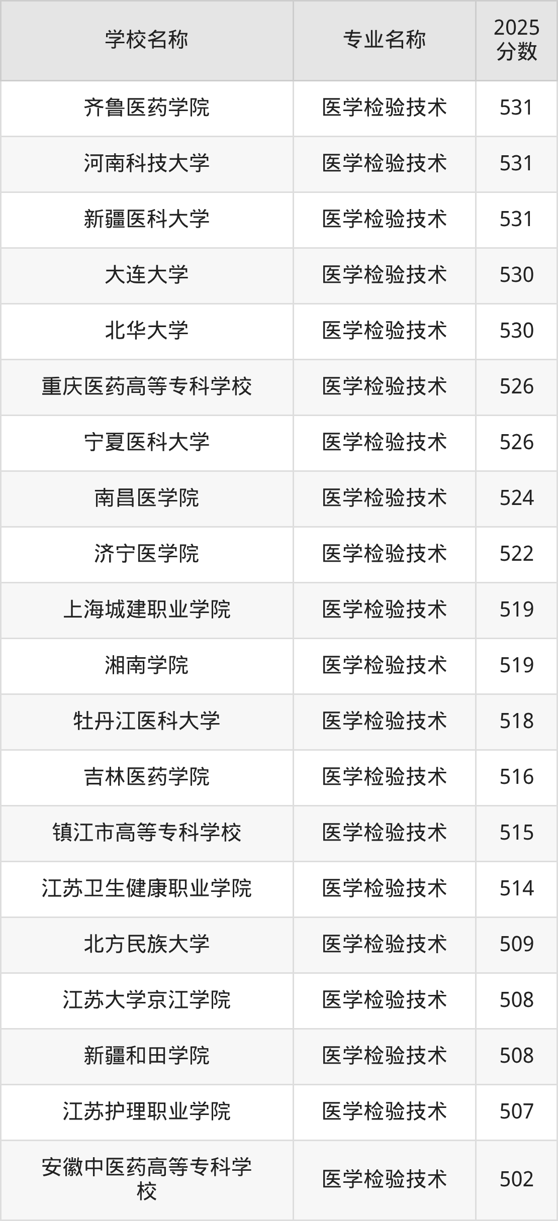 | 宁波卫生职业技术学院 | 医学检验技术 | 514 |