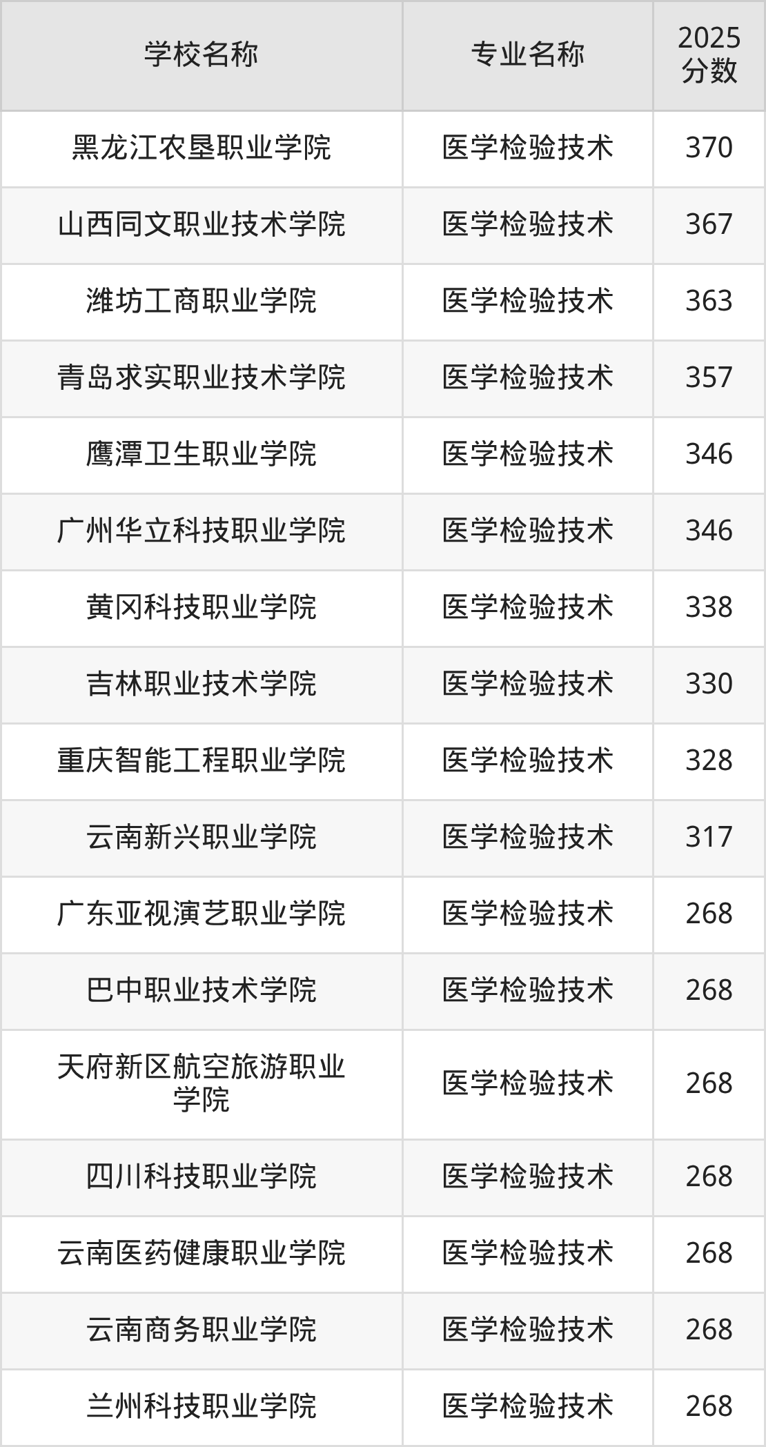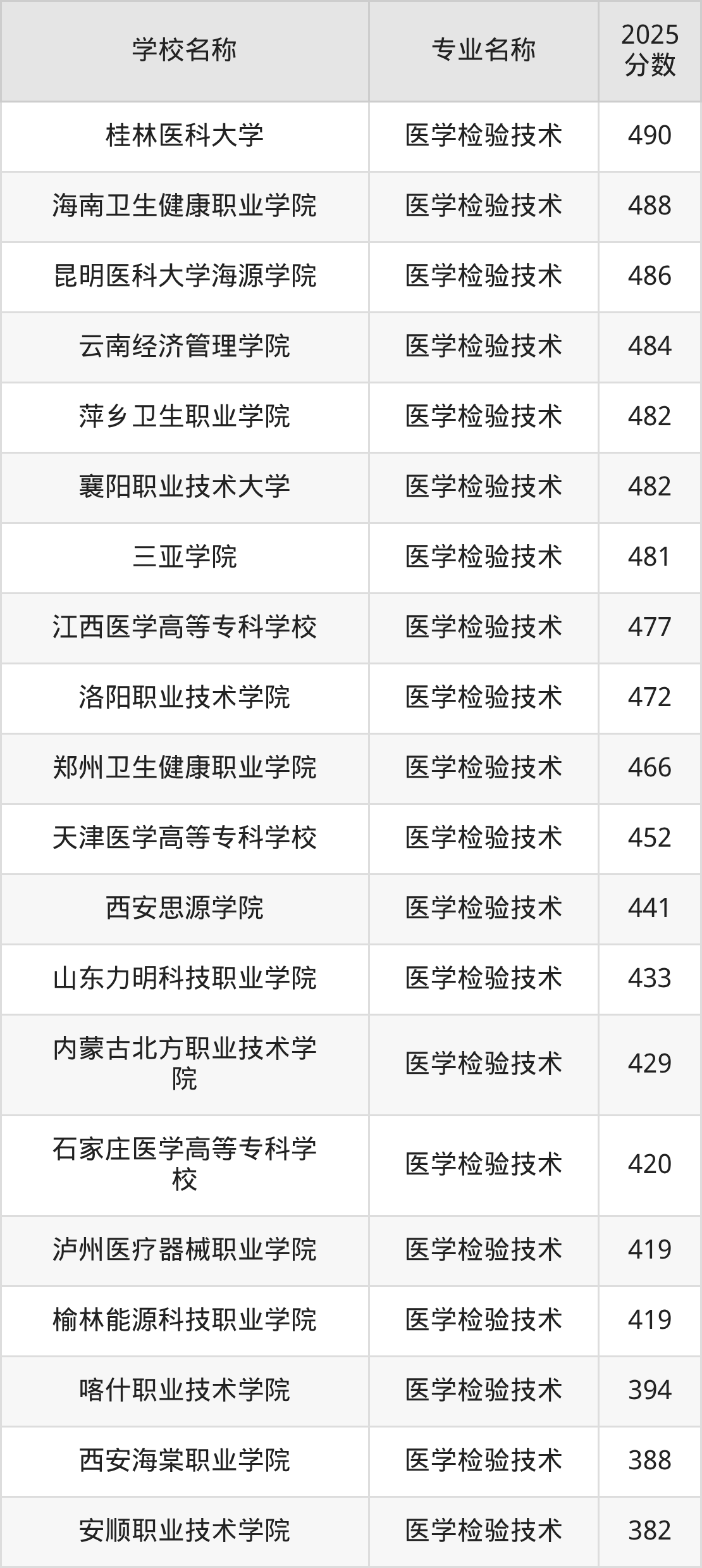 二、浙江医学检验技术专业排名(软科版)
