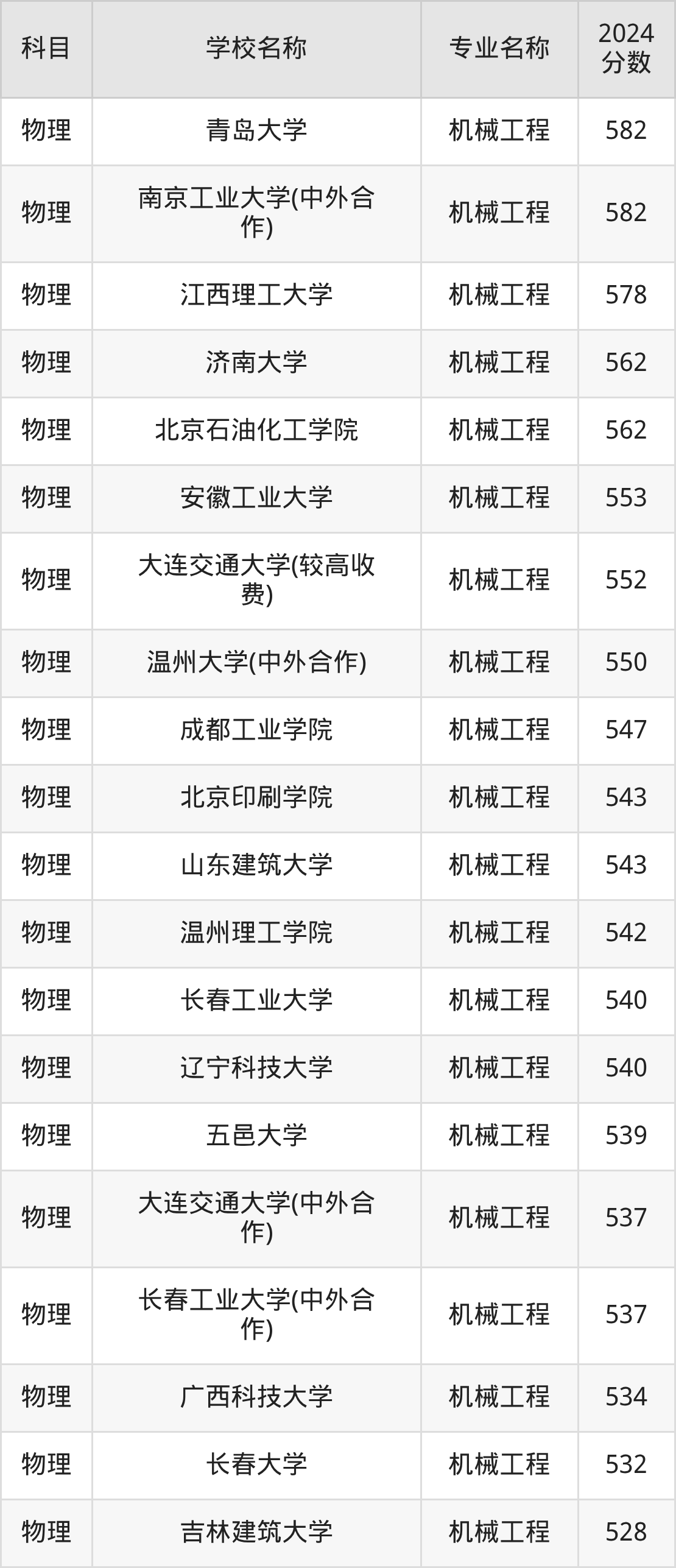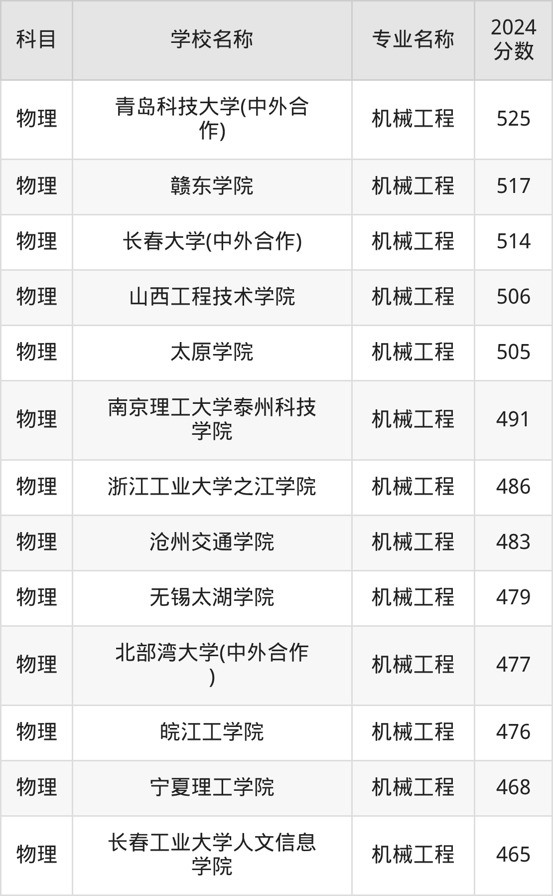 | 学校名称 | 专业名称 | 2024 分数 |