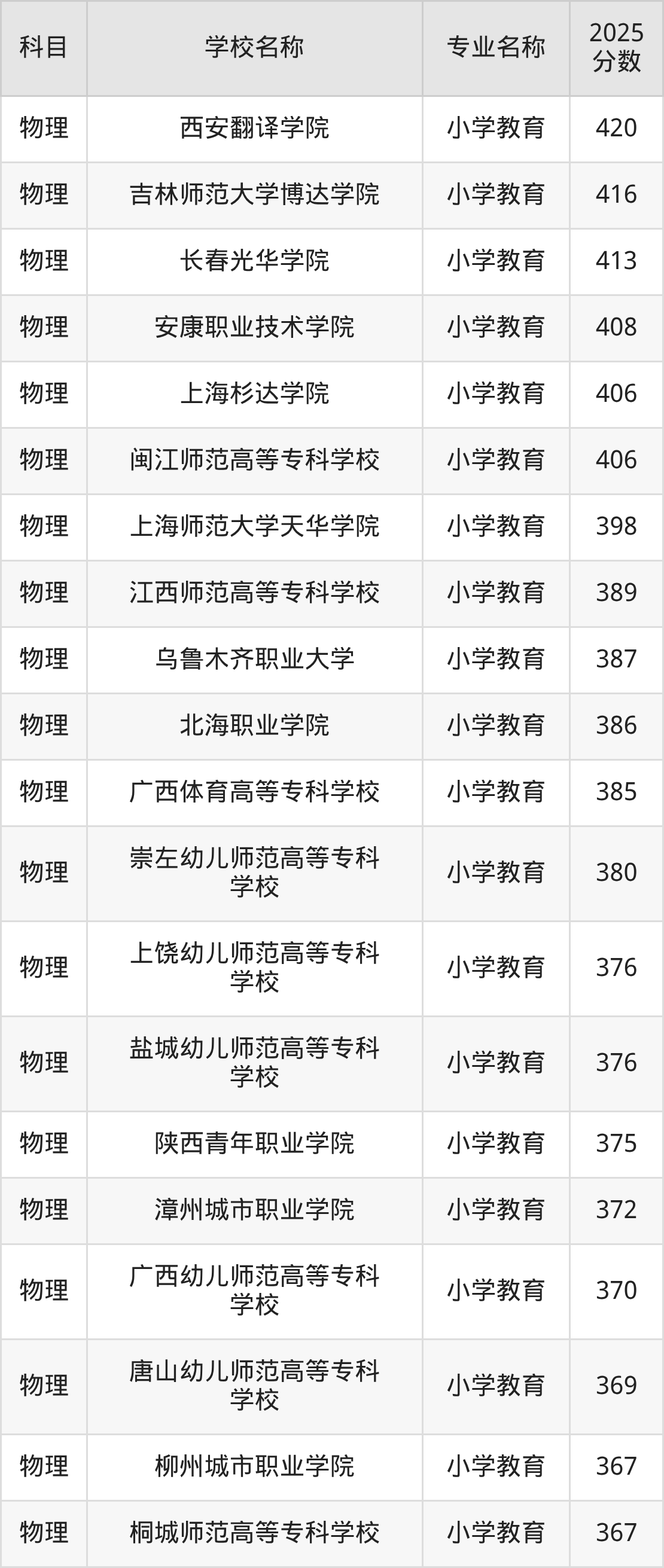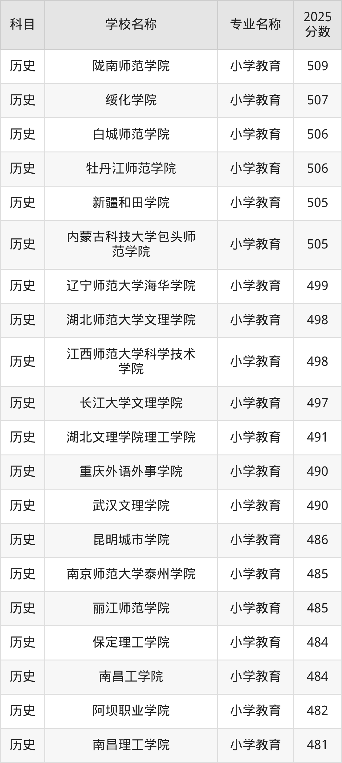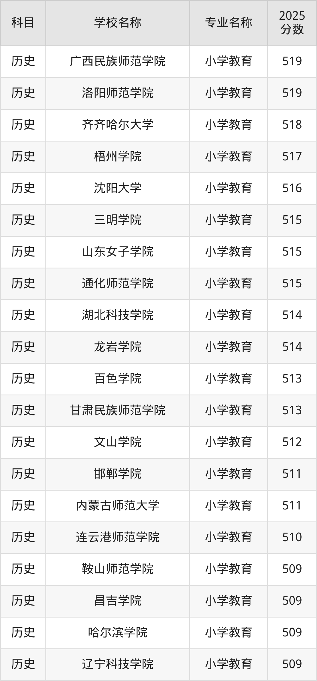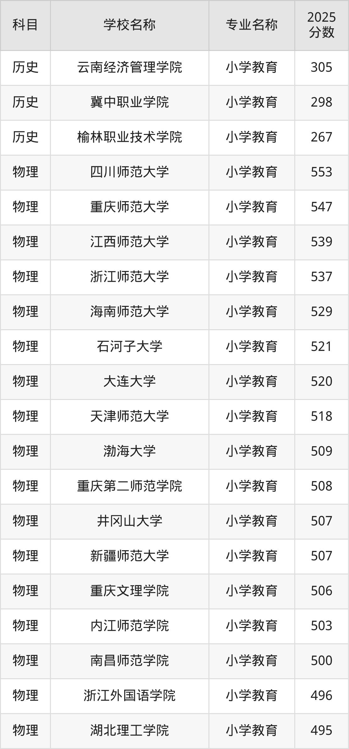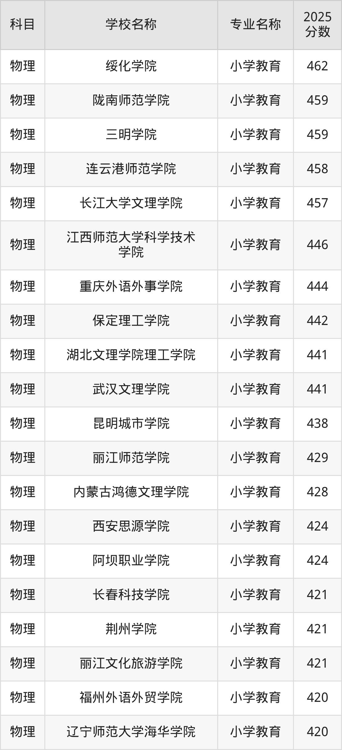 | 学校名称 | 专业名称 | 2025 分数 |