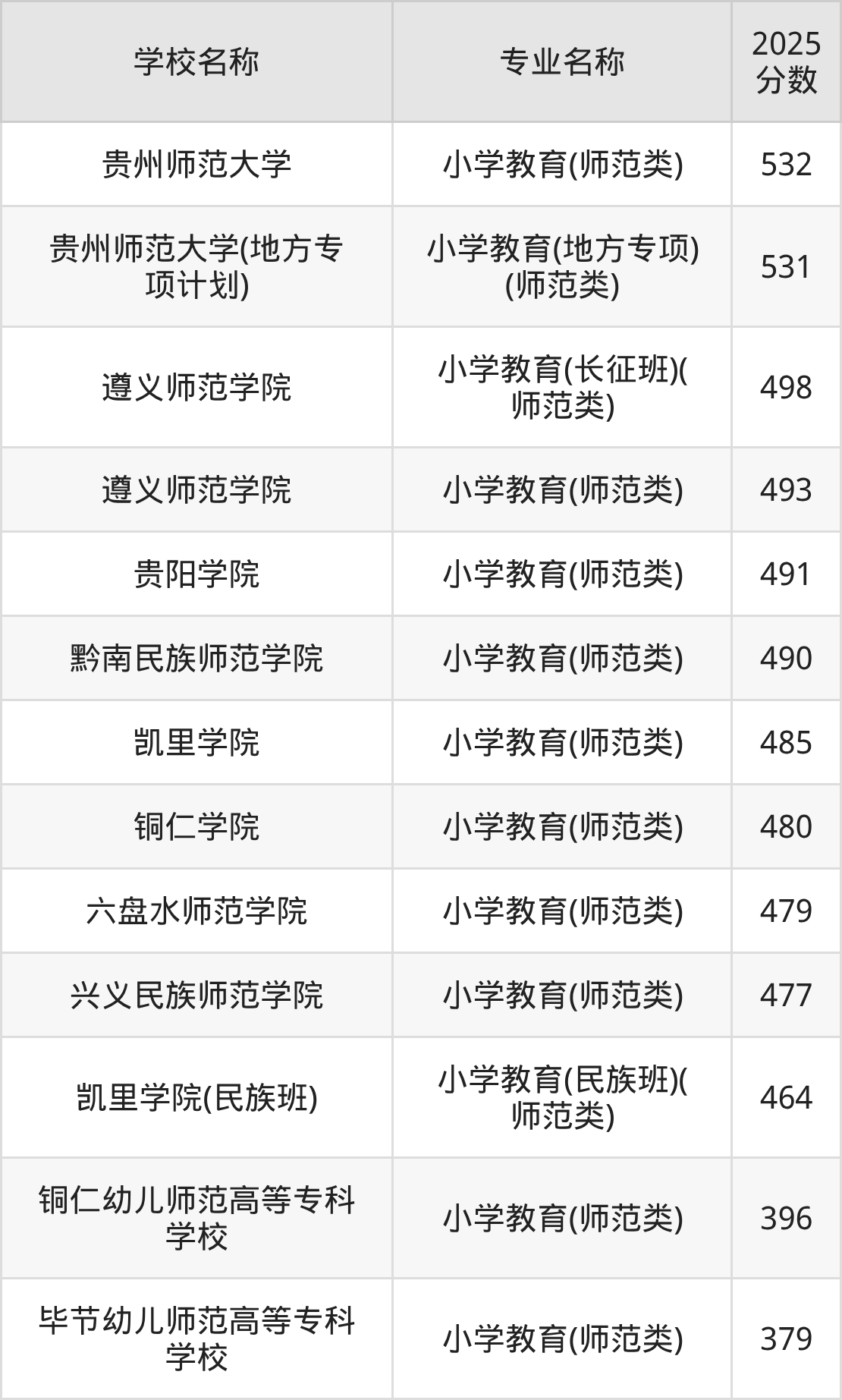 下文将为大家展示贵州省大学小学教育专业2025年在贵州高考的最低录取分数线!