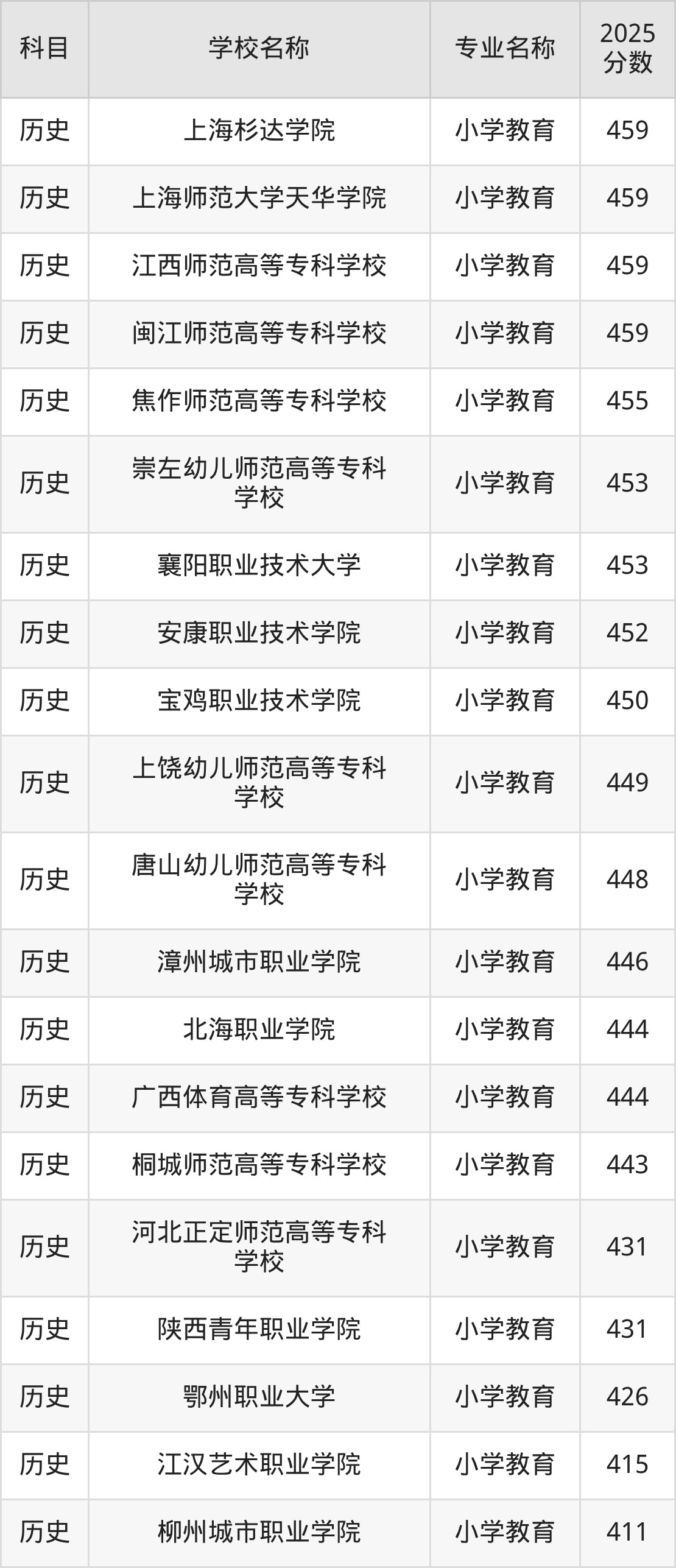 | 铜仁幼儿师范高等专科 学校 | 小学教育(师范 类) | 446 |