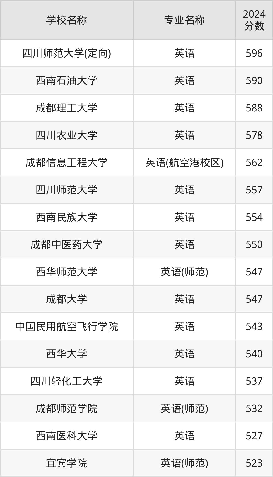 | 四川师范大学 | 英语 | 547 |