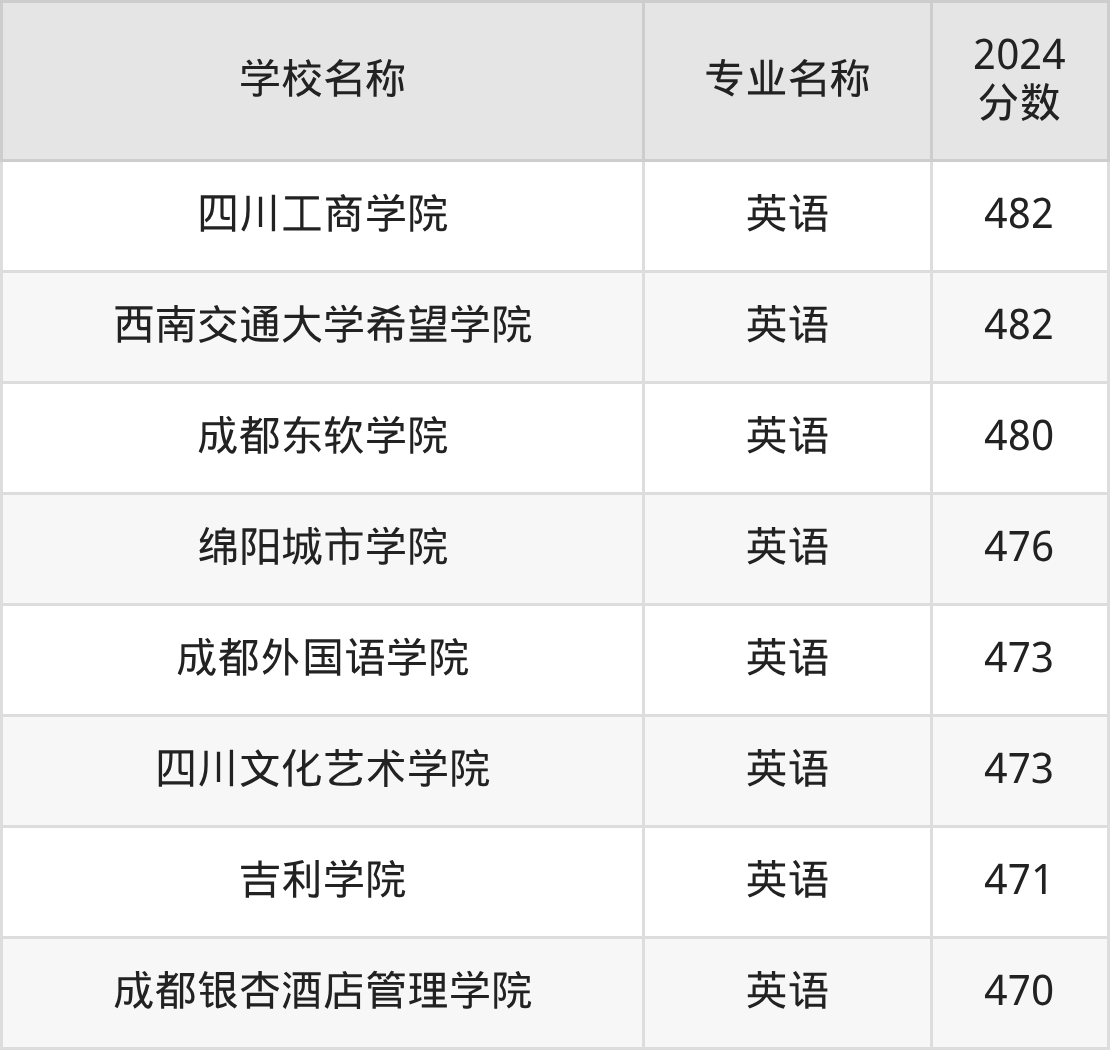 | 成都东软学院 | 英语 | 478 |