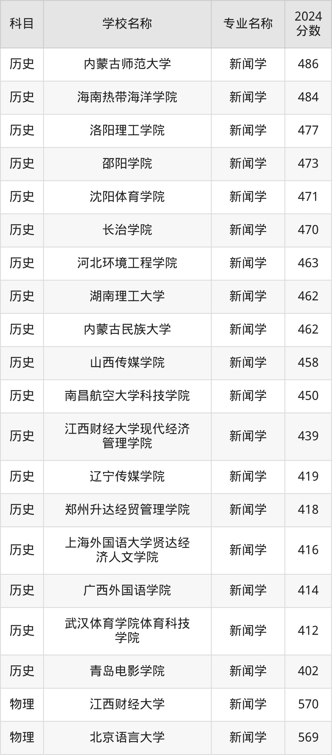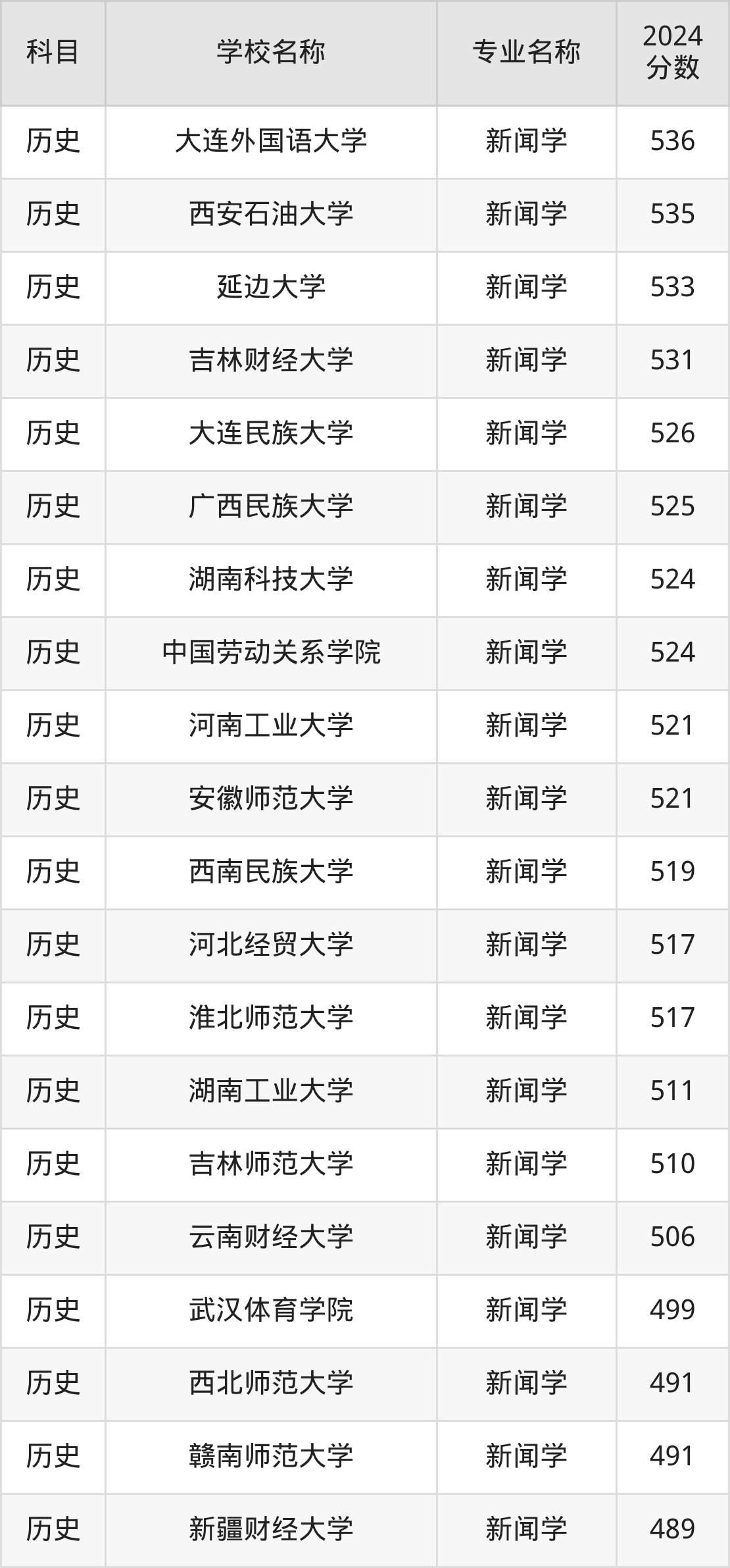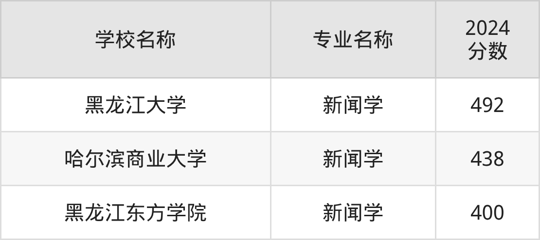圆梦小编根据黑龙江2024年高考历史组专业分,将开设了新闻学专业且位于黑龙江省内的大学按照“录取分”从高到低排序,得出了以上榜单。
