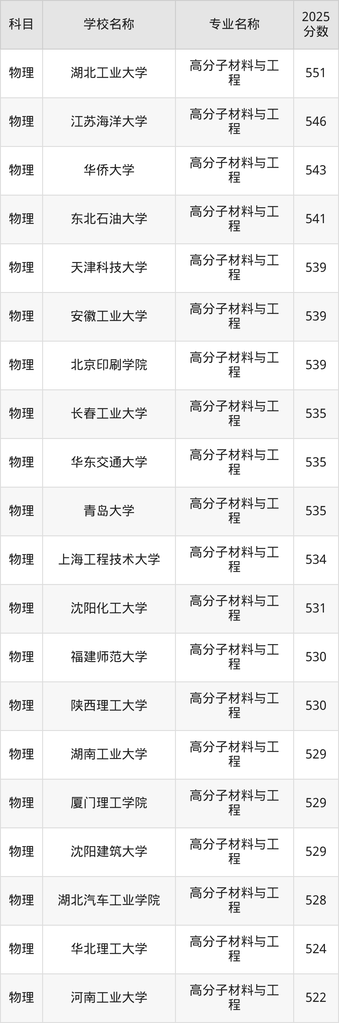 下文将为大家展示山西省大学高分子材料与工程专业2025年在山西高考的最低录取分数线!