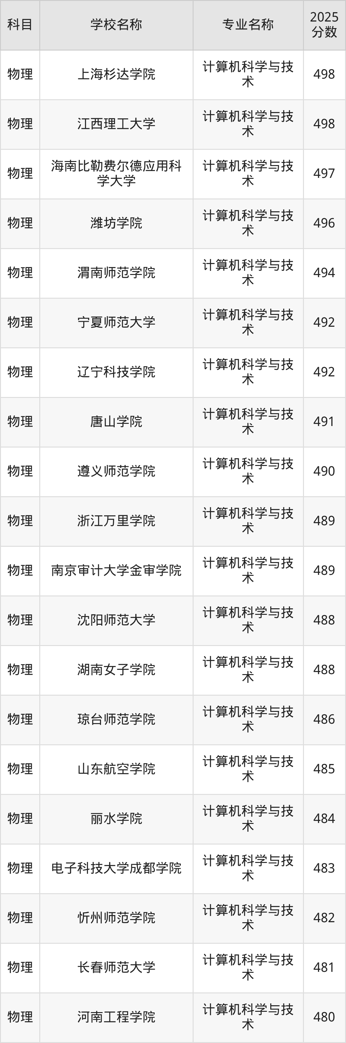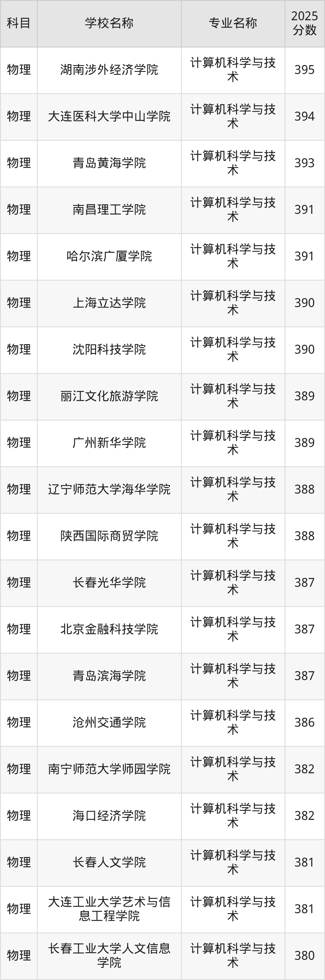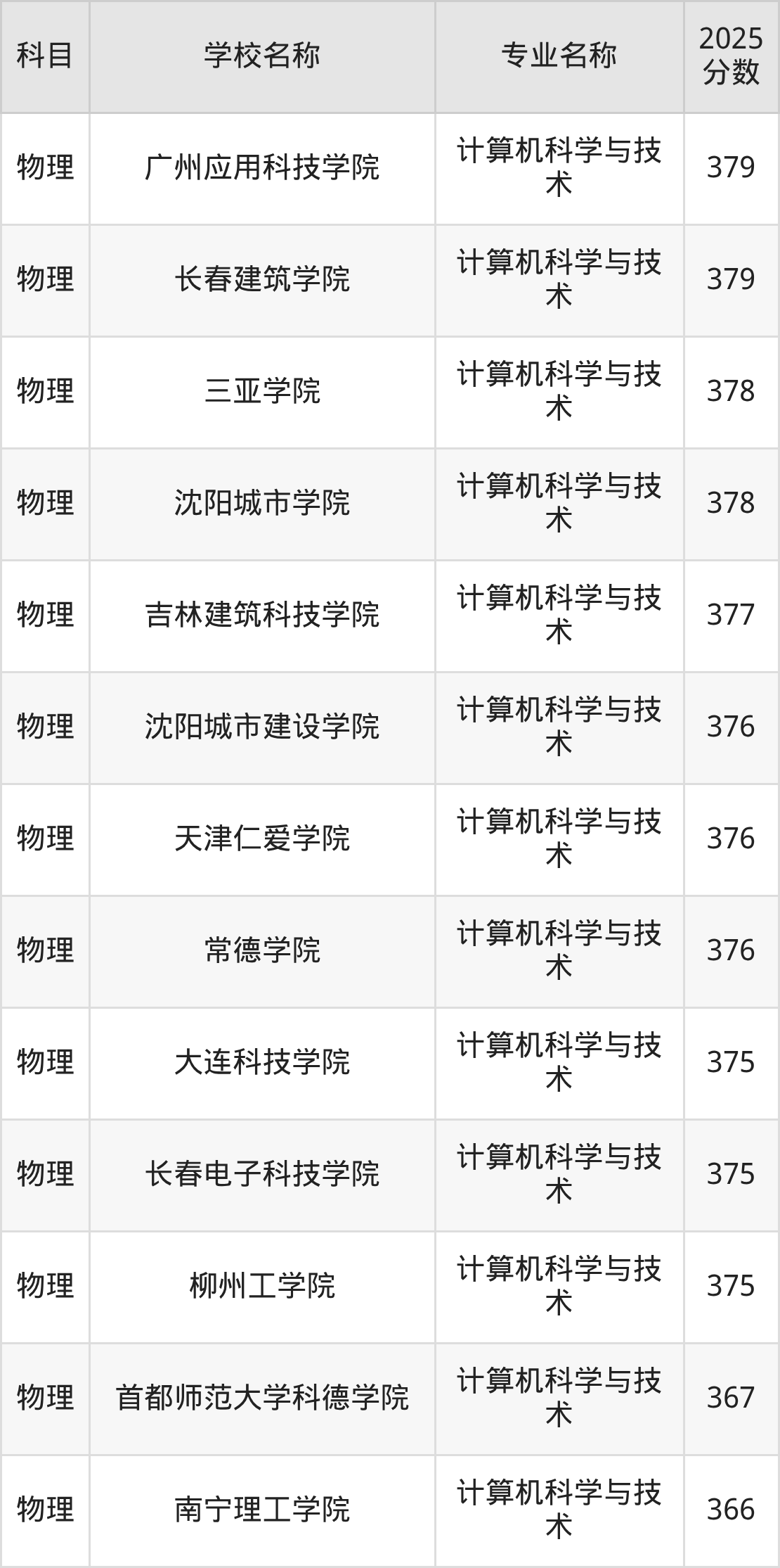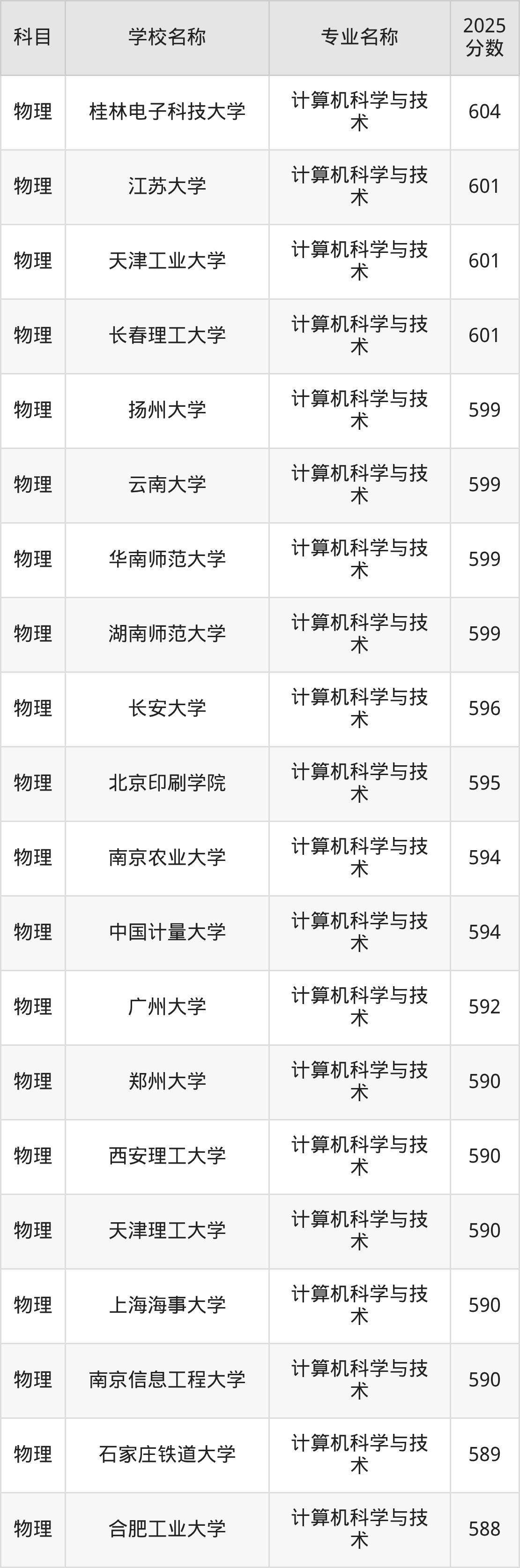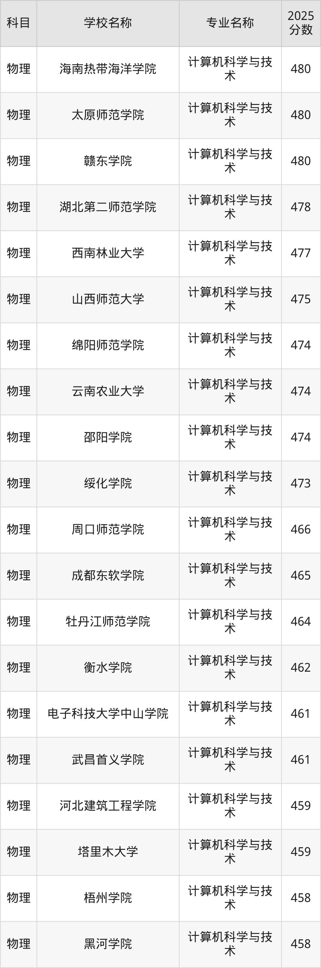 内蒙古高考物理组:计算机科学与技术专业的最低分是375分~610分