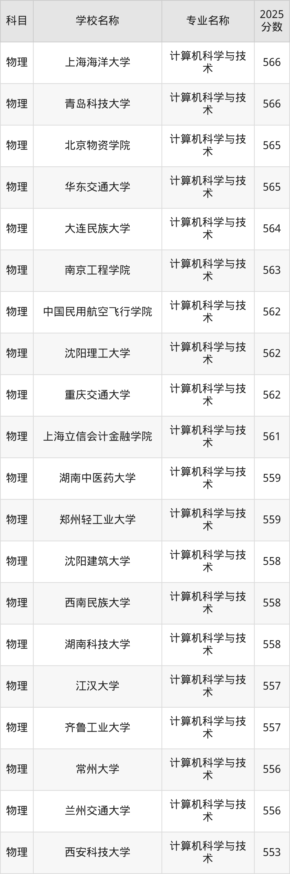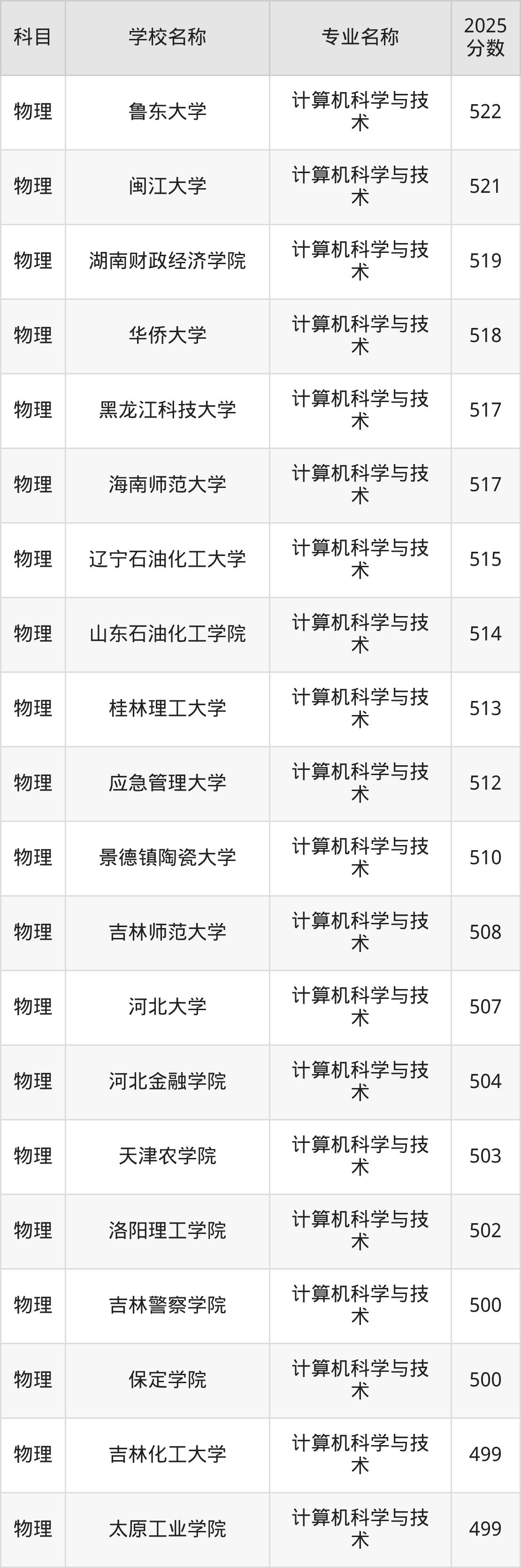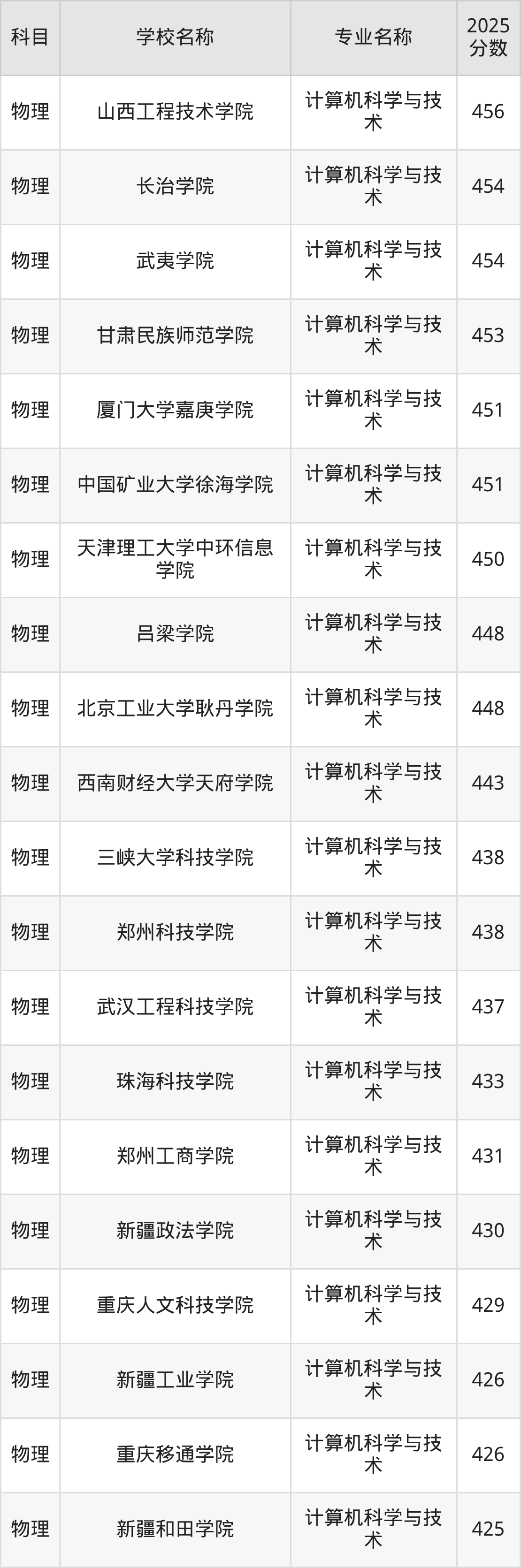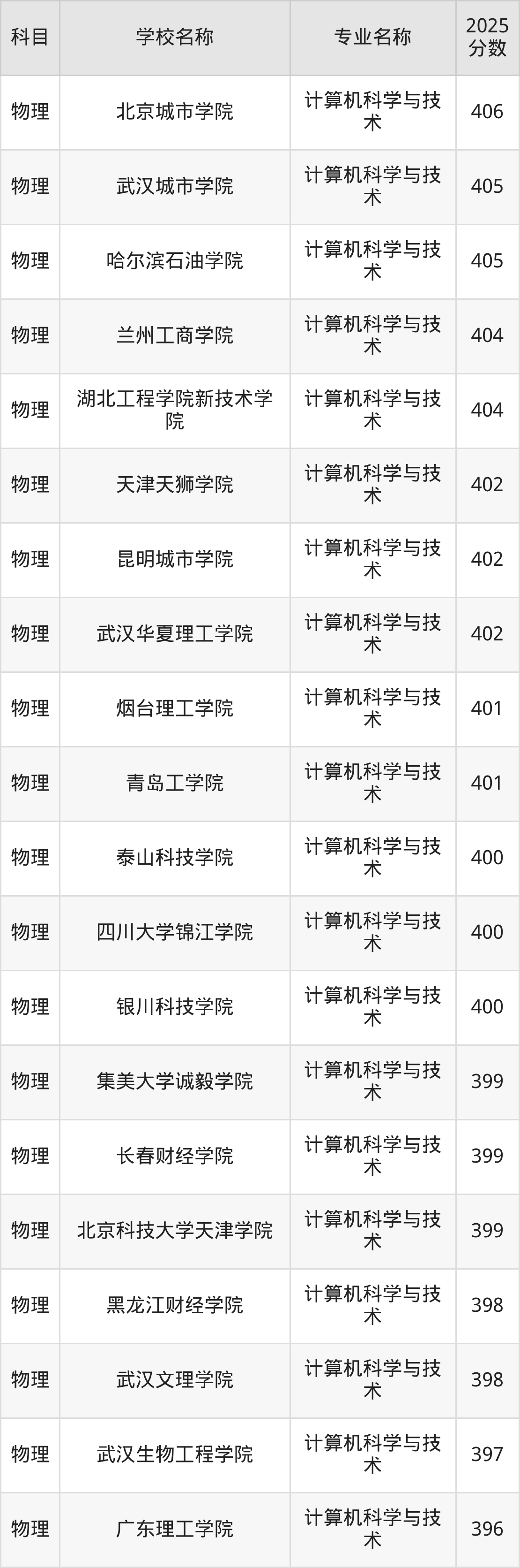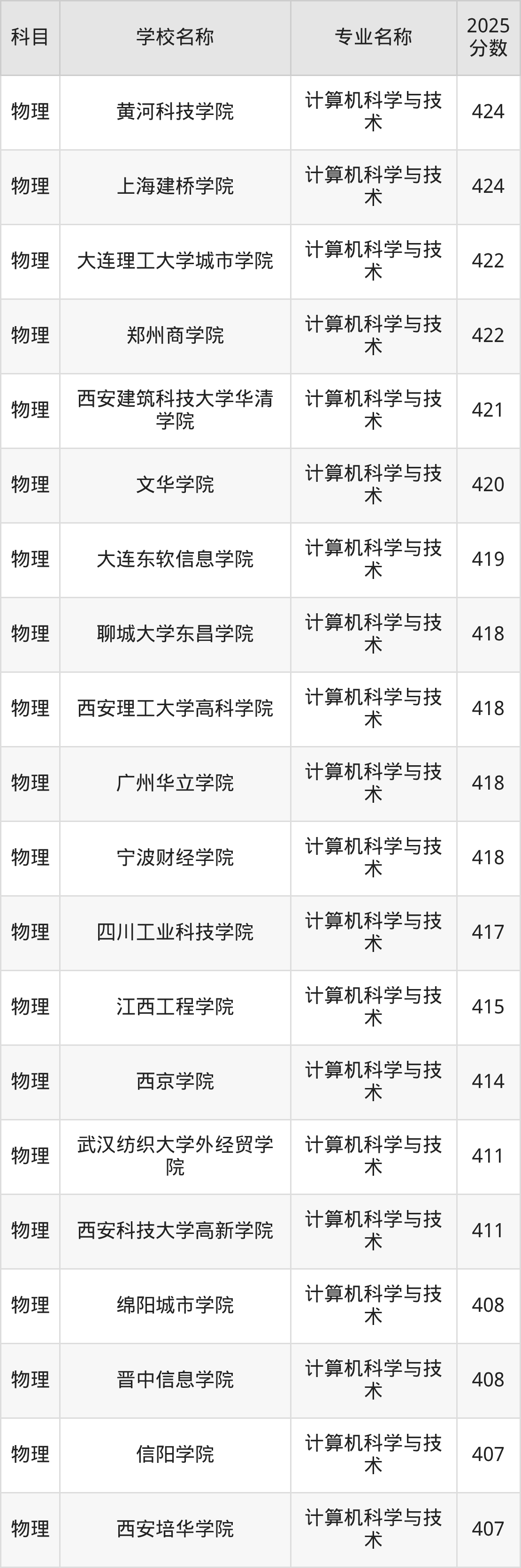 内蒙古高考物理组:计算机科学与技术专业的最低分是375分~610分