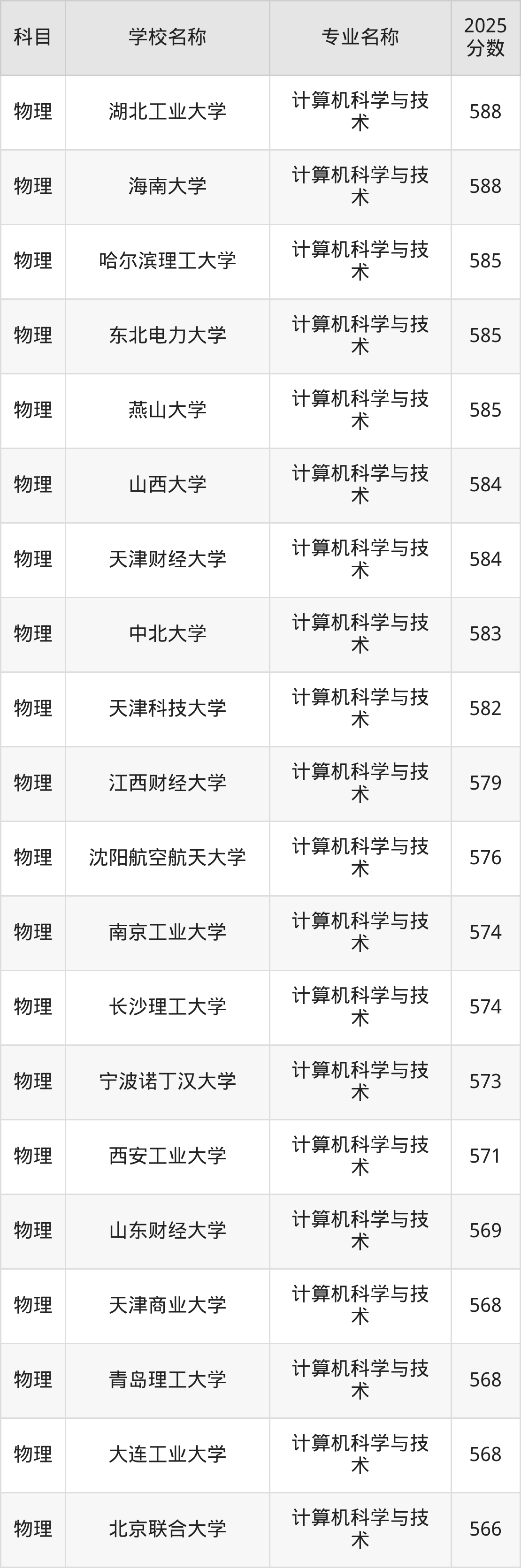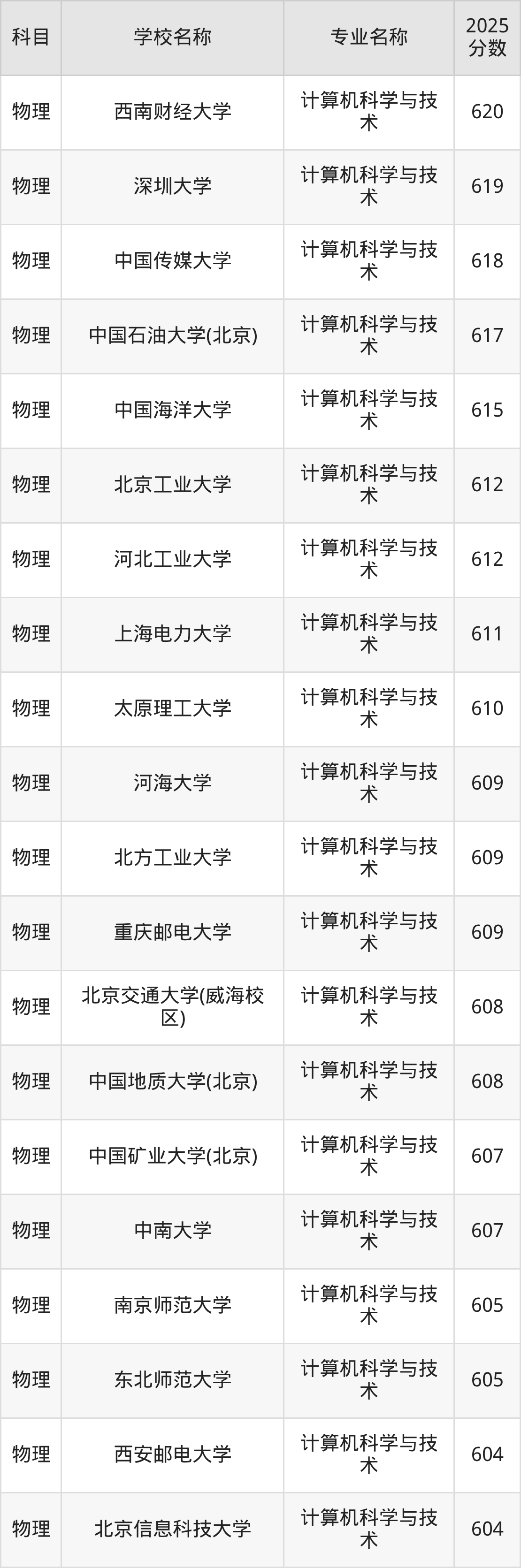 在直接以“计算机科学与技术”的名称招生的内蒙古自治区大学中,内蒙古大学的分数线最高、排名第一名,在物理组的最低分是610分,全自治区排名前4935位的高考生才有较大机会被录取。