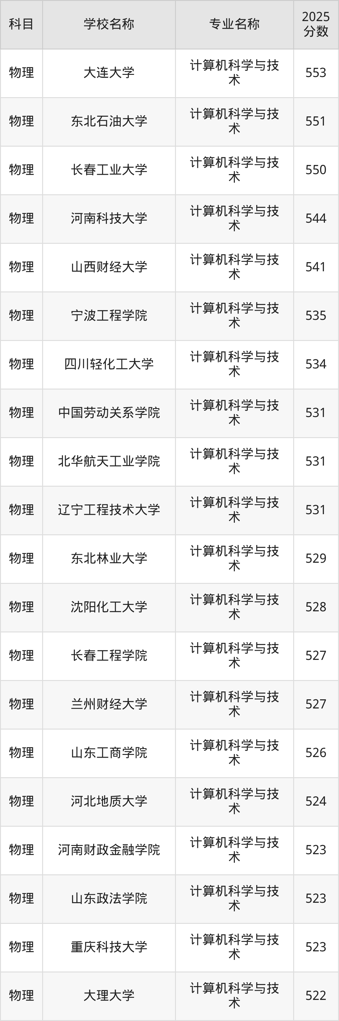 圆梦小编根据内蒙古2025年高考物理组专业分,将开设了计算机科学与技术专业且位于内蒙古自治区内的大学按照“录取分”从高到低排序,得出了以上榜单。