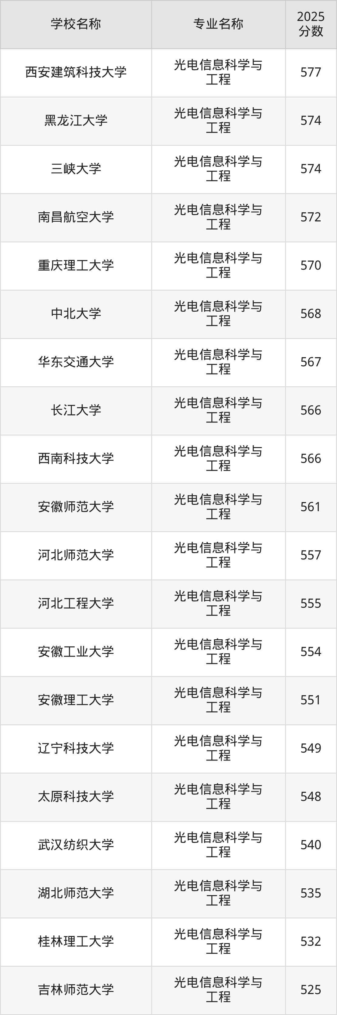 | 齐鲁工业大学 | 光电信息科学与 工程 | 545 |