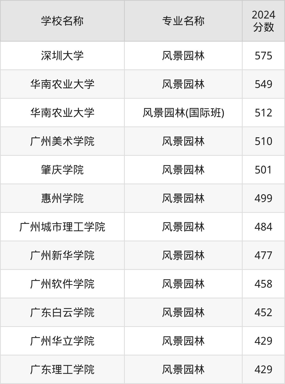| 广州软件学院 | 风景园林 | 468 |