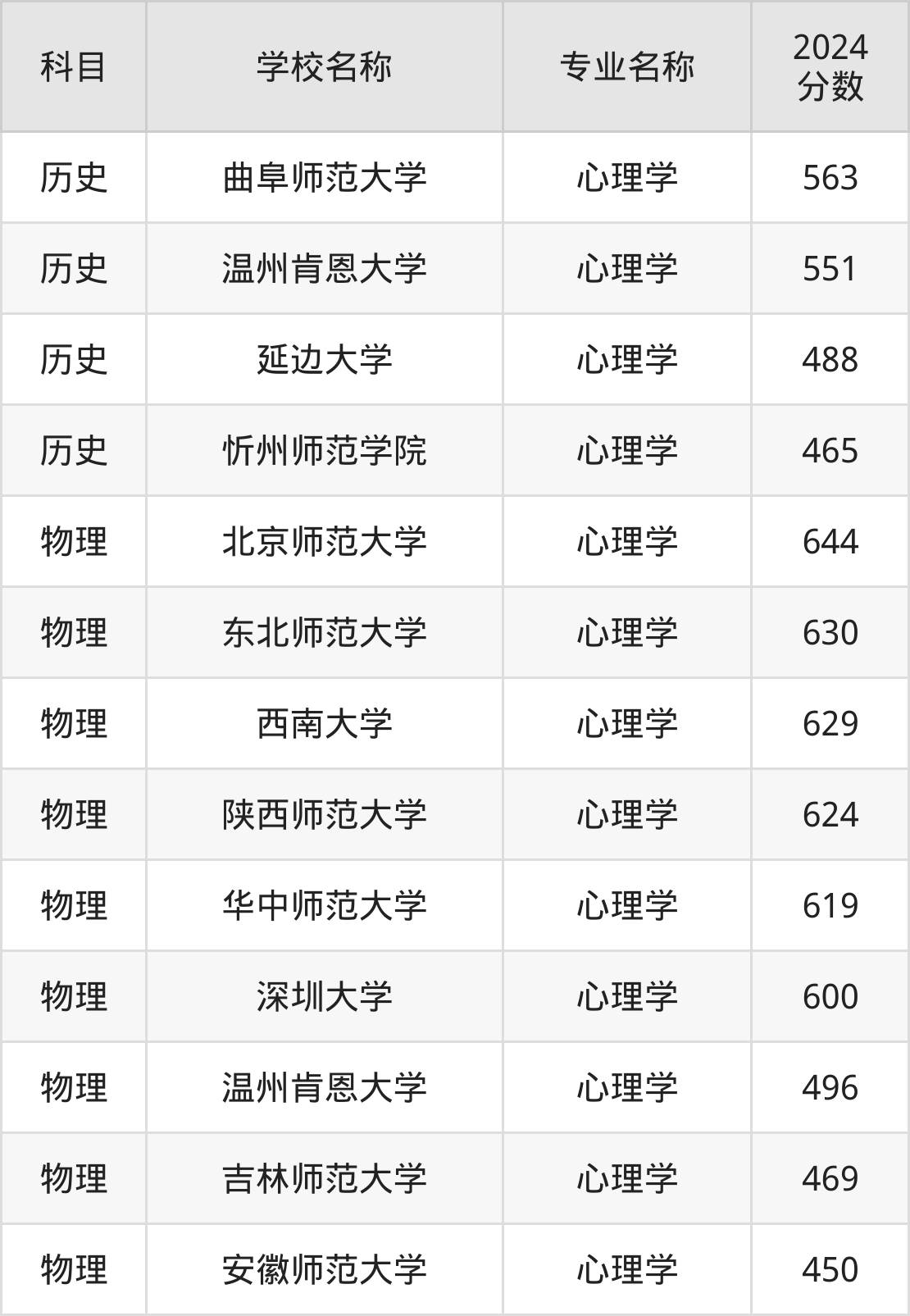 | 牡丹江师范学院 | 心理学(师范类) | 504 |