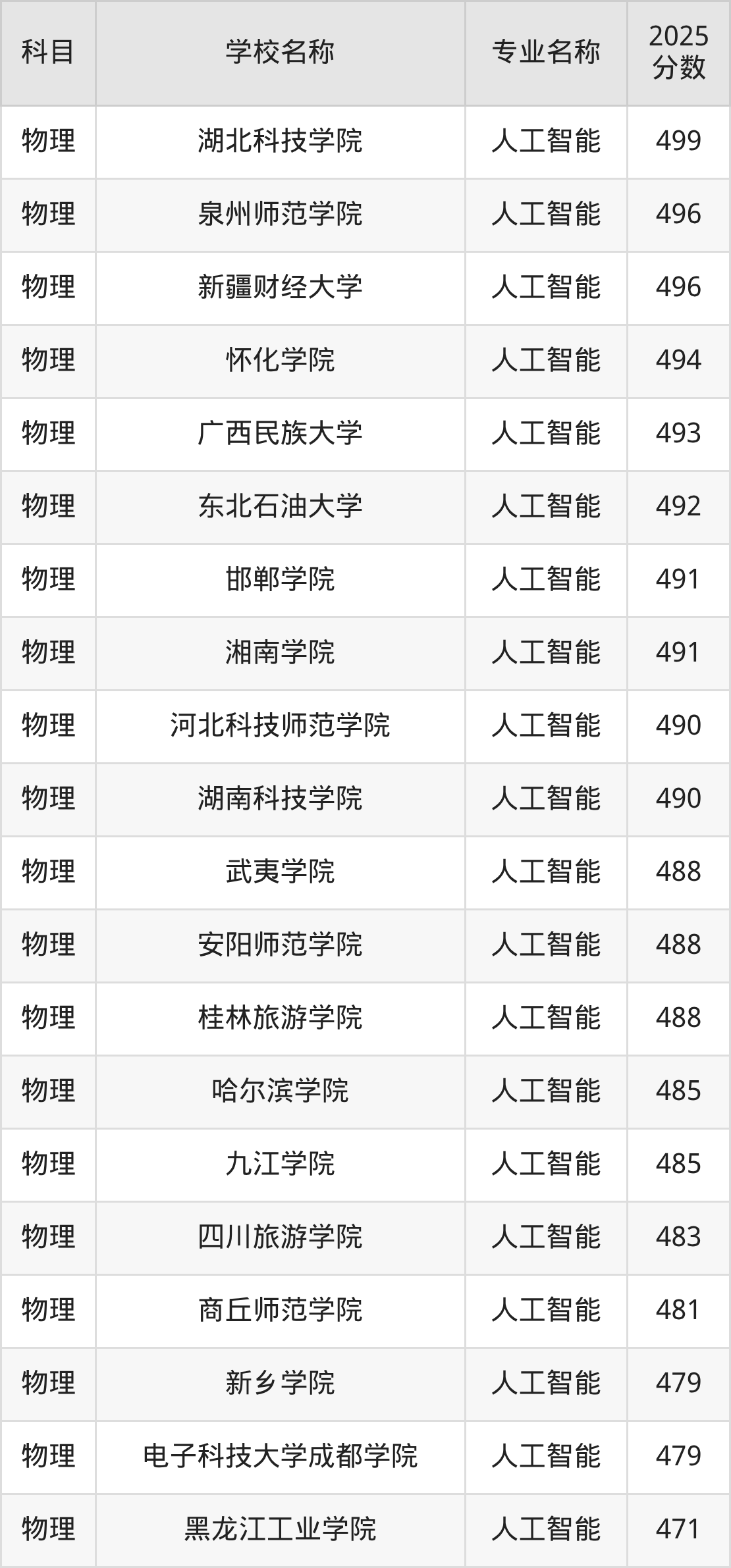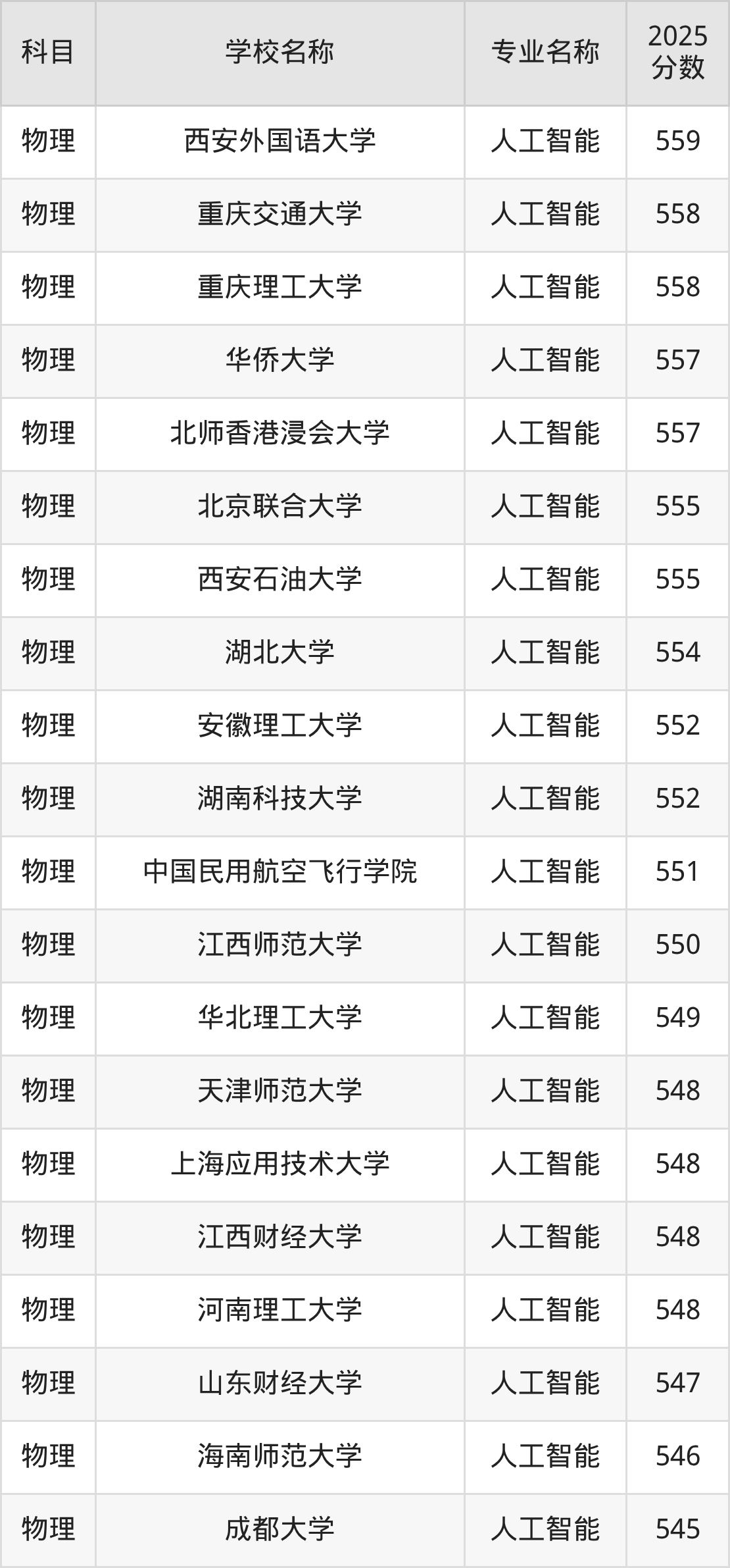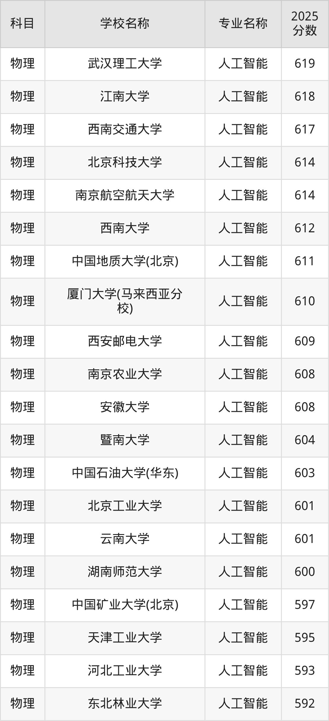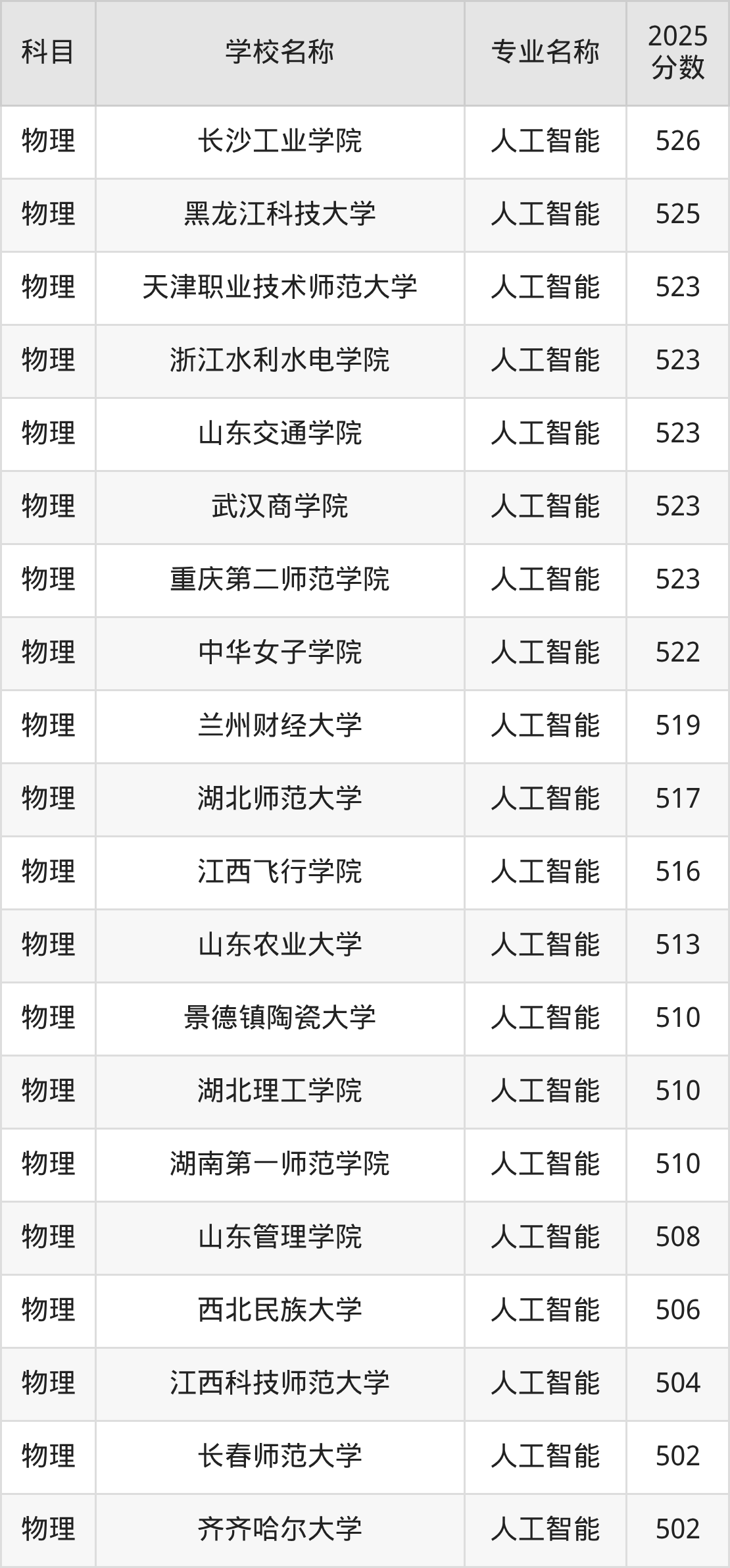 下文将为大家展示山西省大学人工智能专业2025年在山西高考的最低录取分数线!