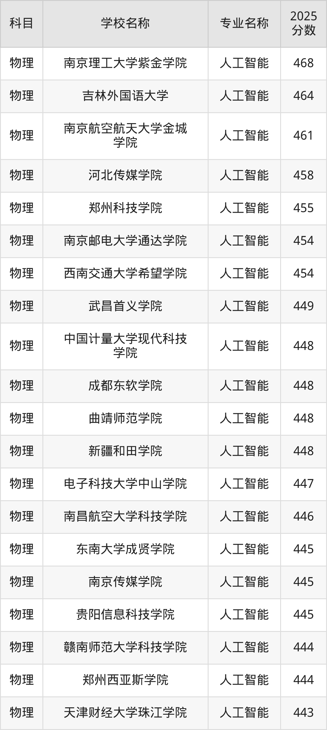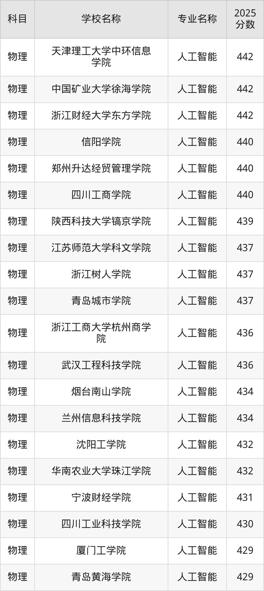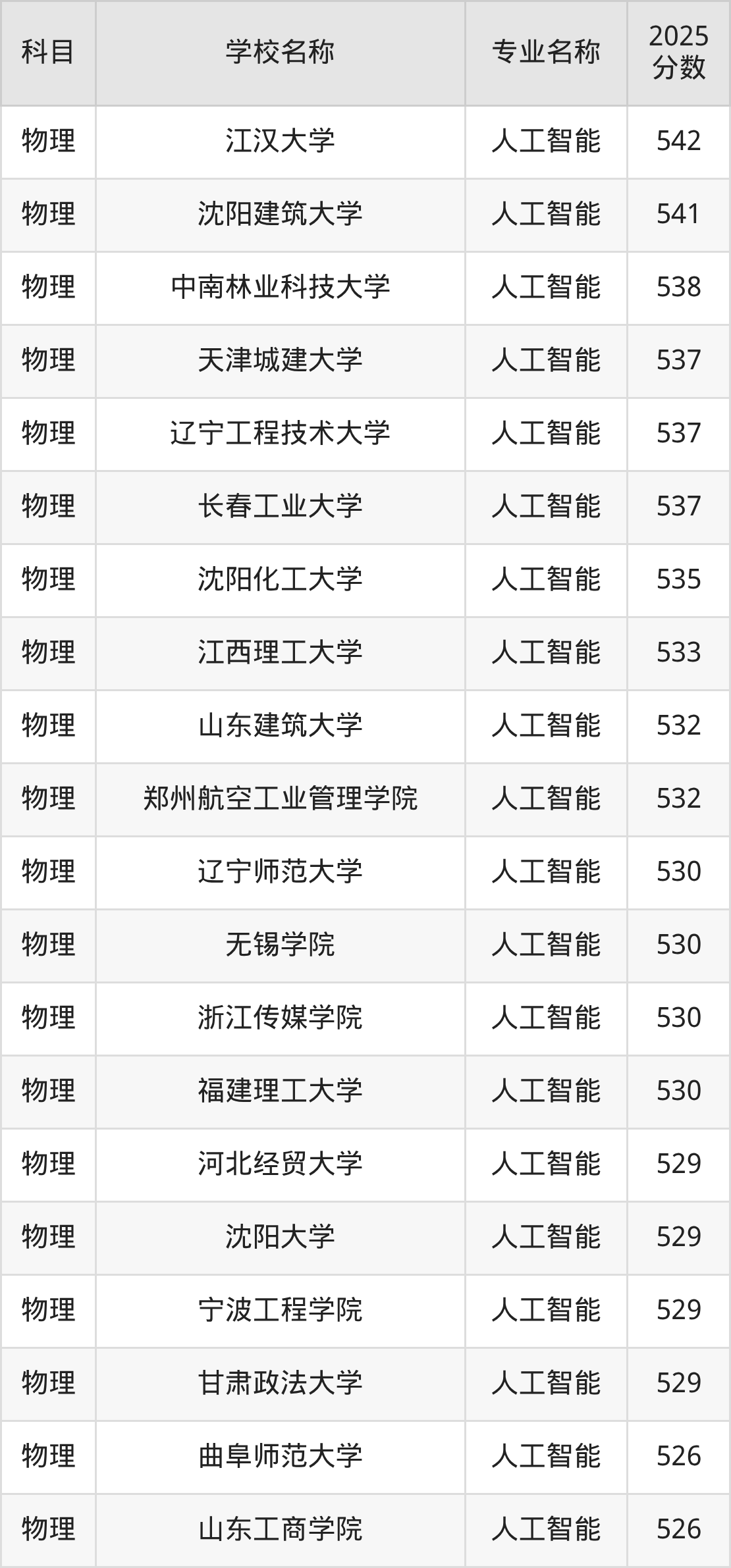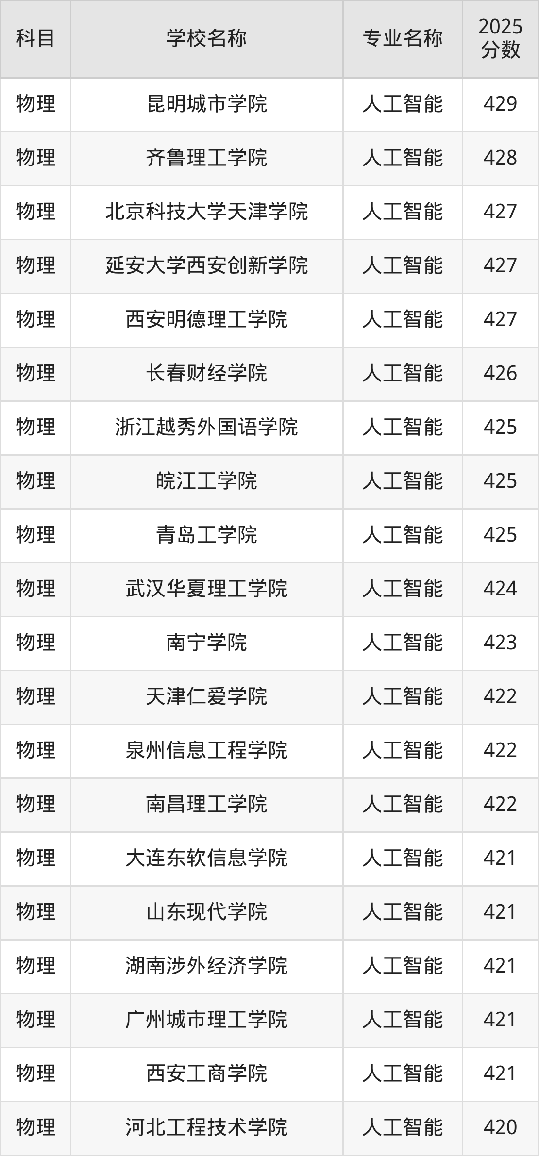 下文将为大家展示山西省大学人工智能专业2025年在山西高考的最低录取分数线!