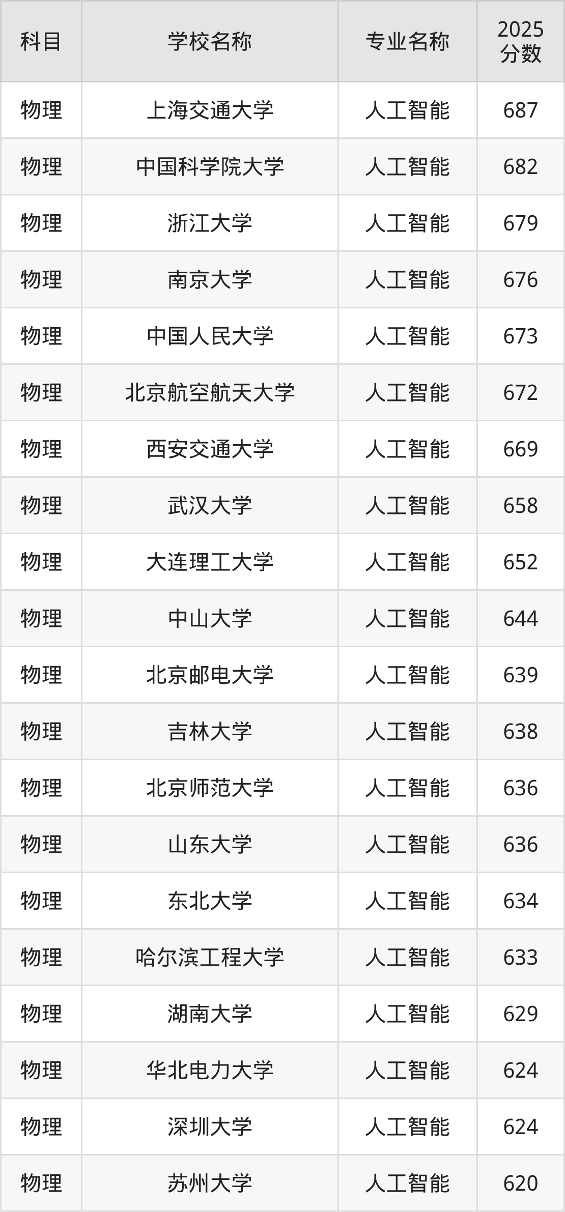 山西高考物理组:人工智能专业的最低分是423分~592分