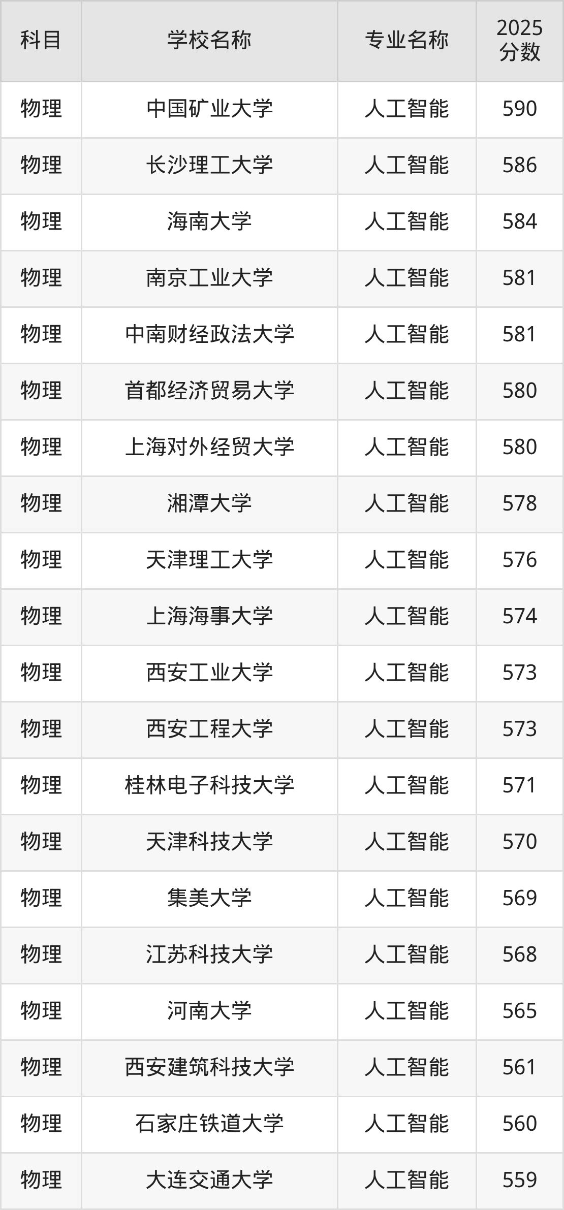 在直接以“人工智能”的名称招生的山西省大学中,太原理工大学的分数线最高、排名第一名,在物理组的最低分是592分,全省排名前12790位的高考生才有较大机会被录取。