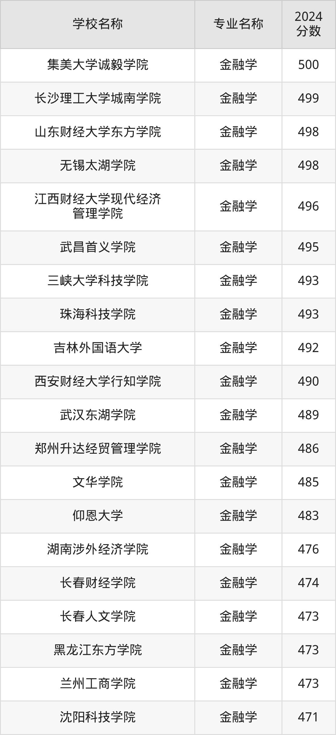 | 天津财经大学珠江学院 | 金融学 | 492 |
