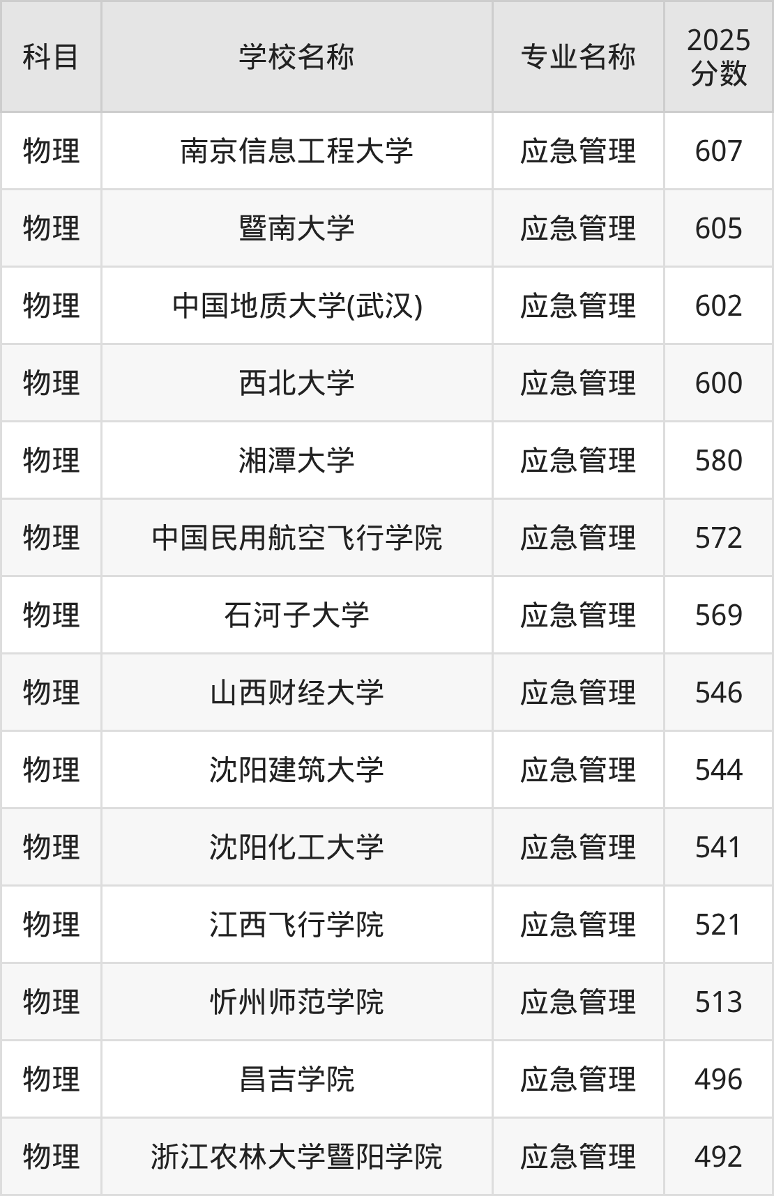 | 应急管理大学 | 应急管理 | 538 |