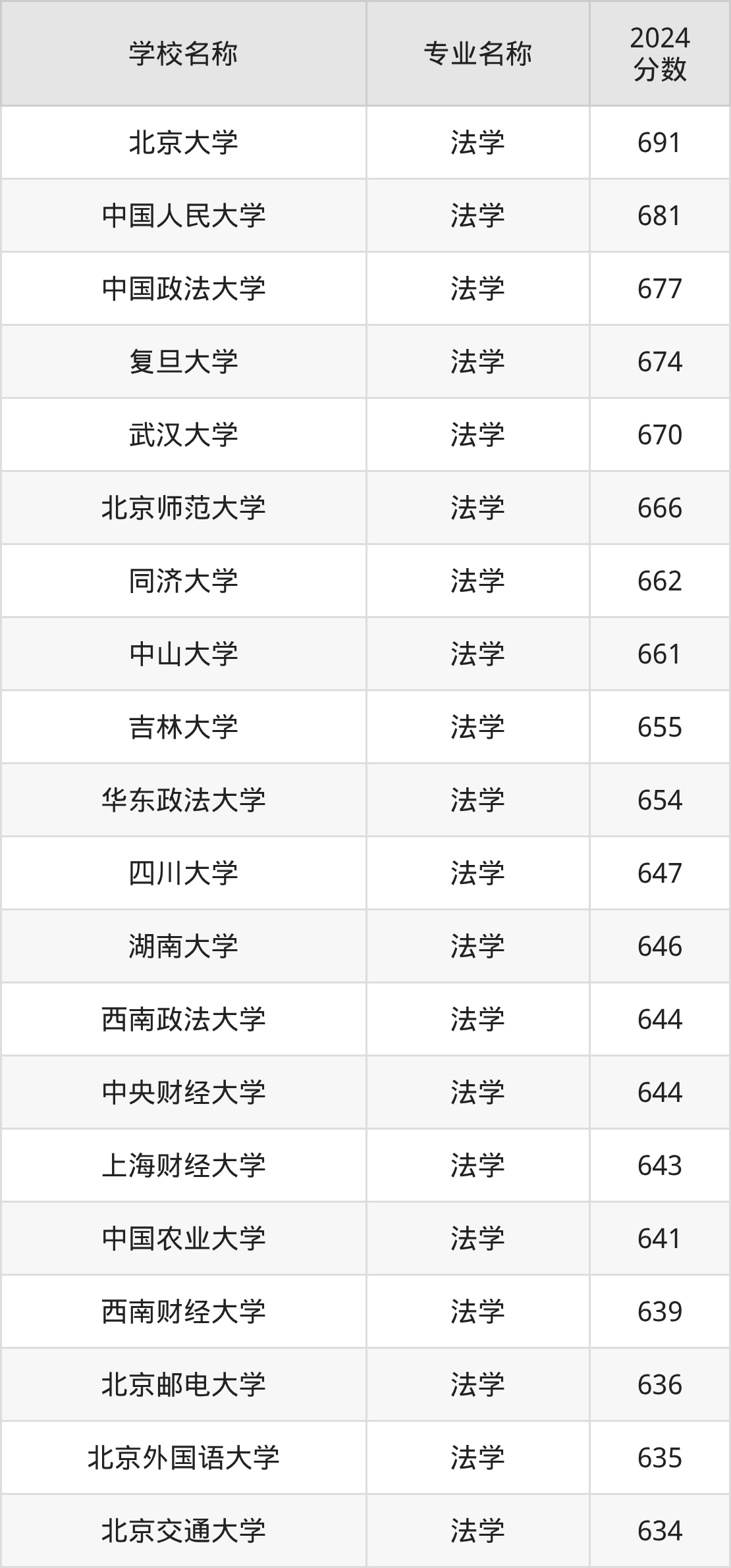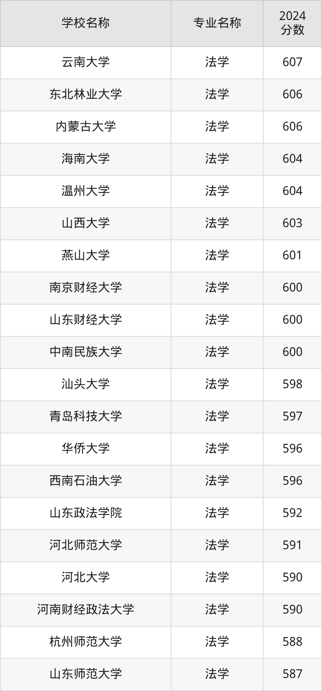 | 天津大学 | 法学 | 646 |