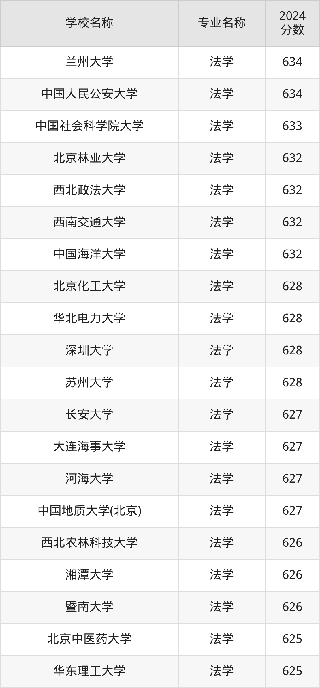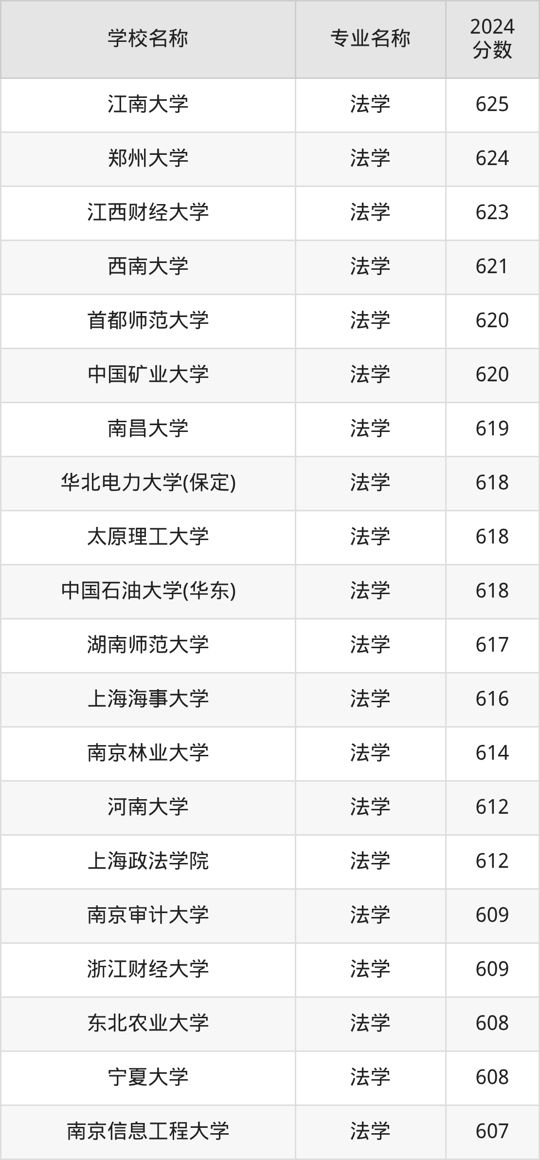 | 河北工业大学 | 法学 | 628 |