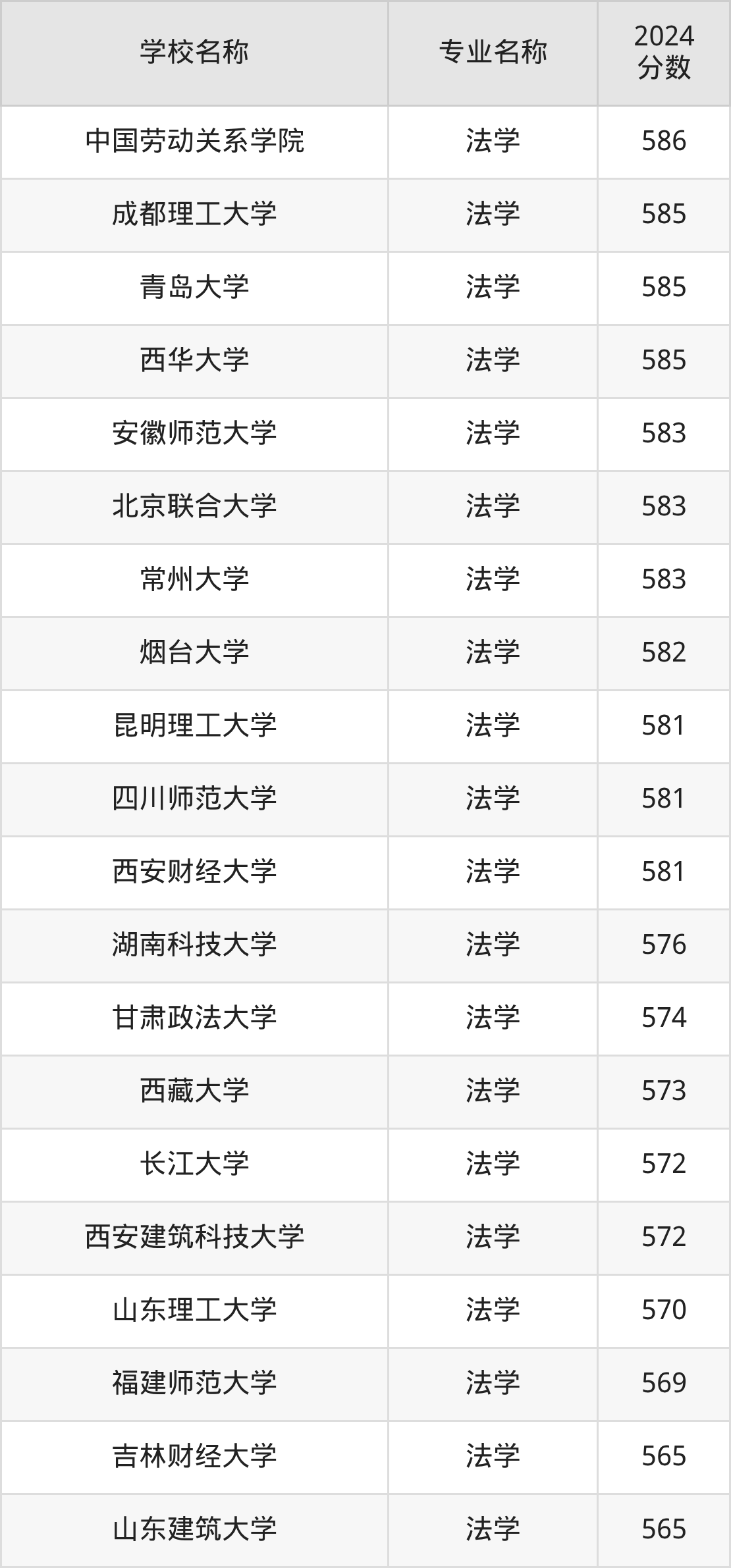 | 天津师范大学 | 法学 | 583 |