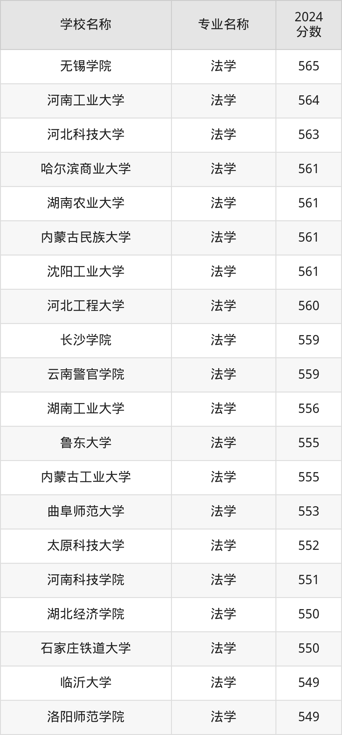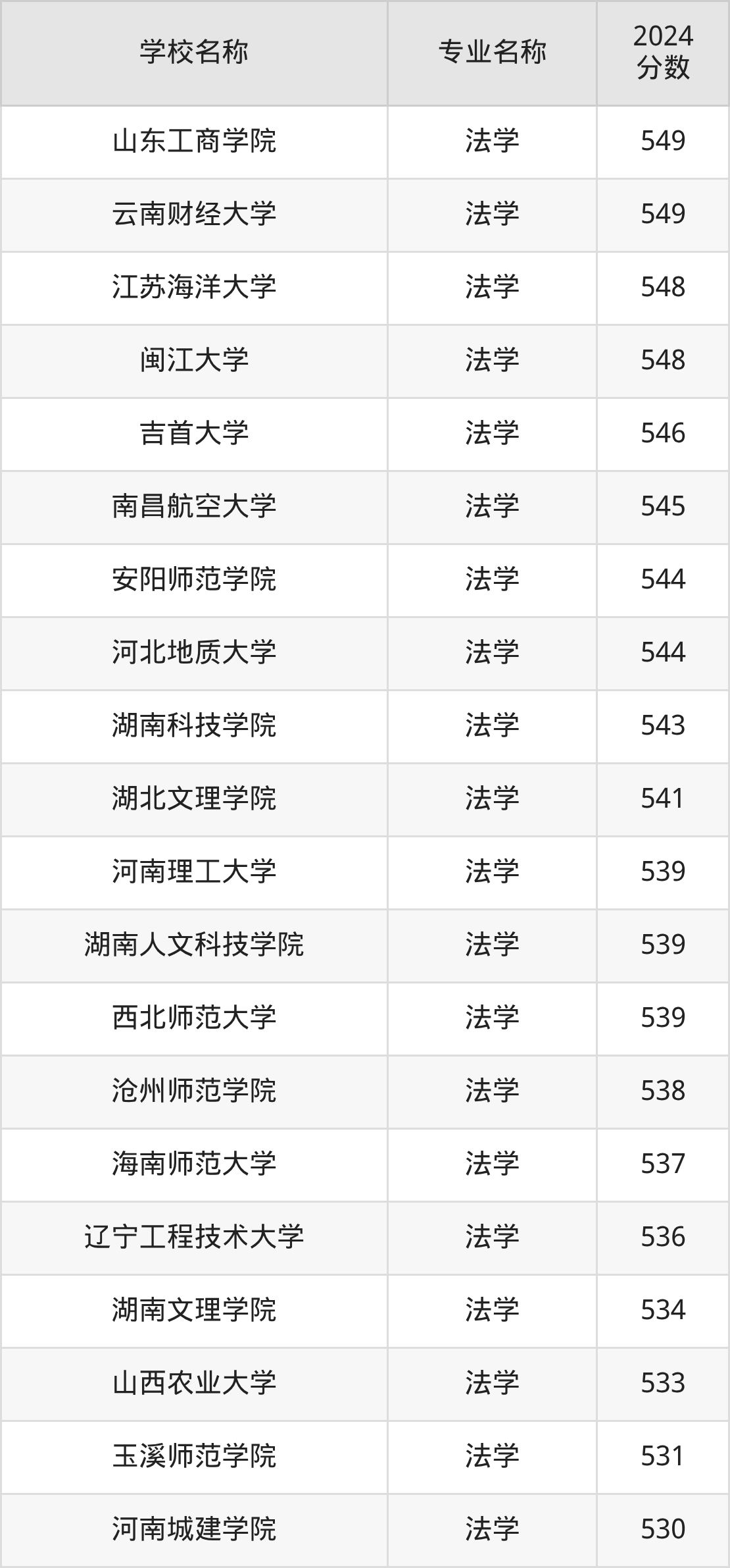 | 天津商业大学 | 法学 | 555 |