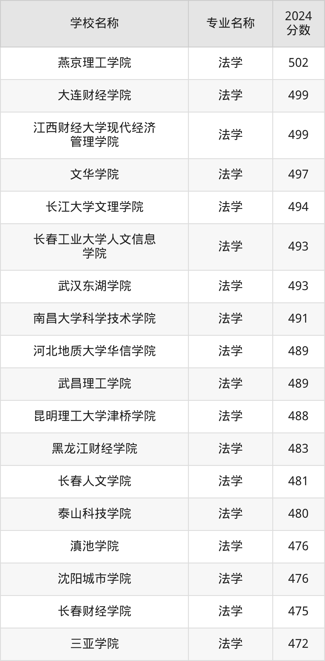 | 天津仁爱学院 | 法学 | 503 |