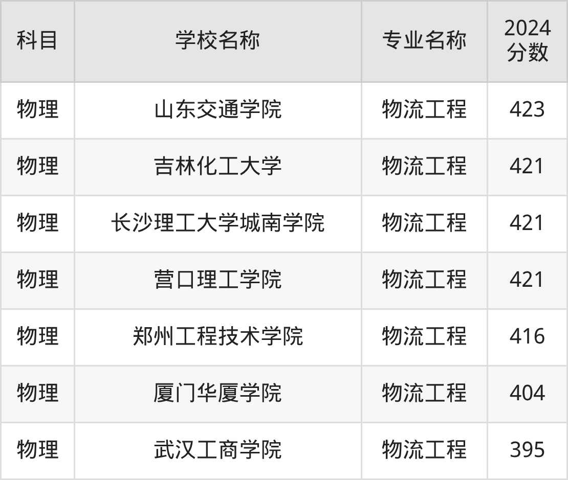 广西高考物理组:物流工程专业的最低分是381分~469分