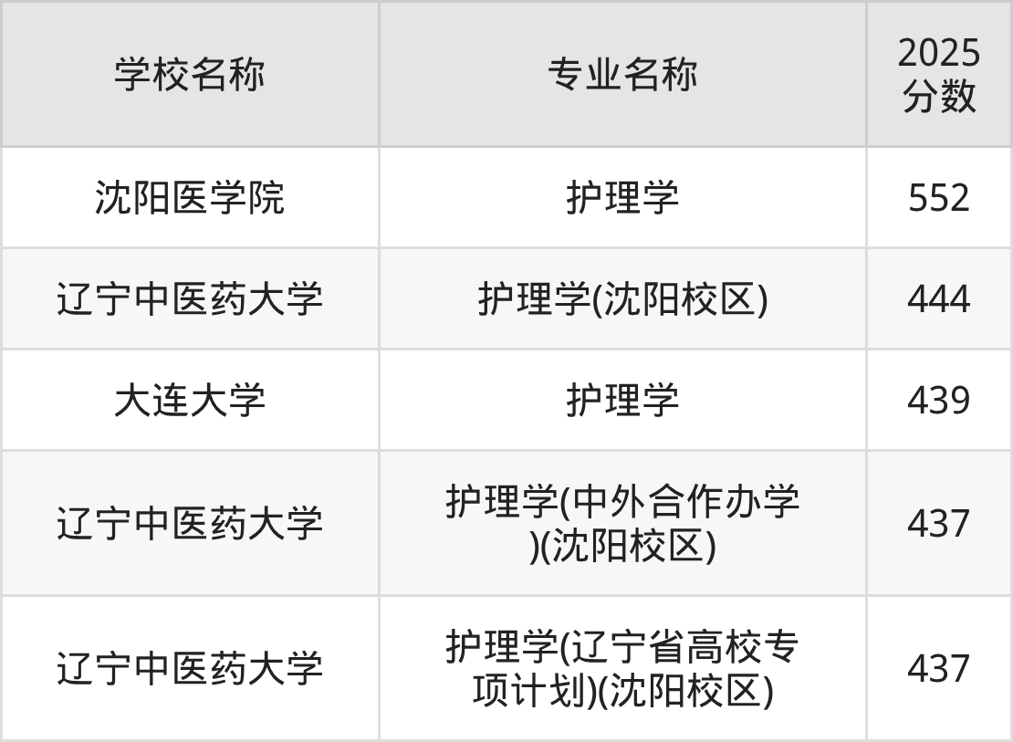 下文将为大家展示辽宁省大学护理学专业2025年在辽宁高考的最低录取分数线!