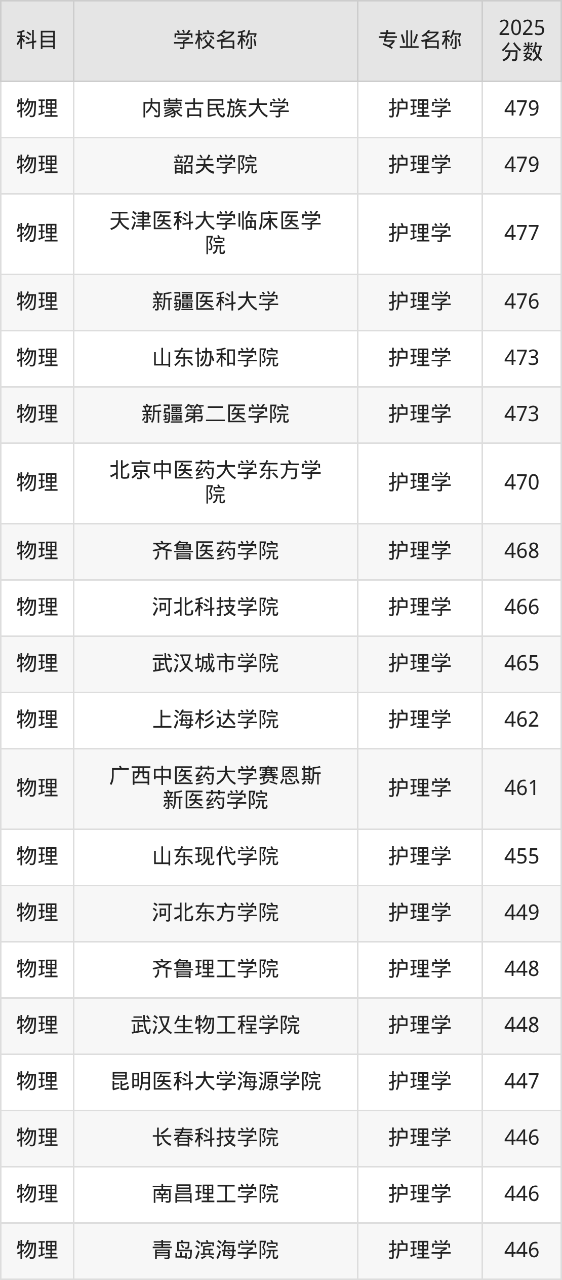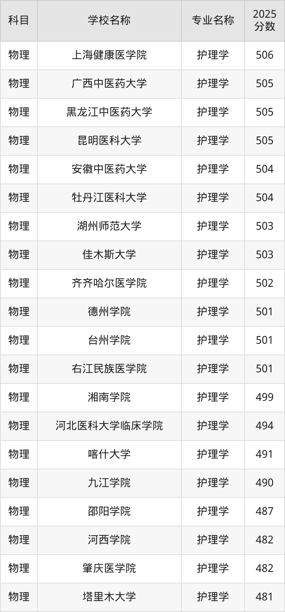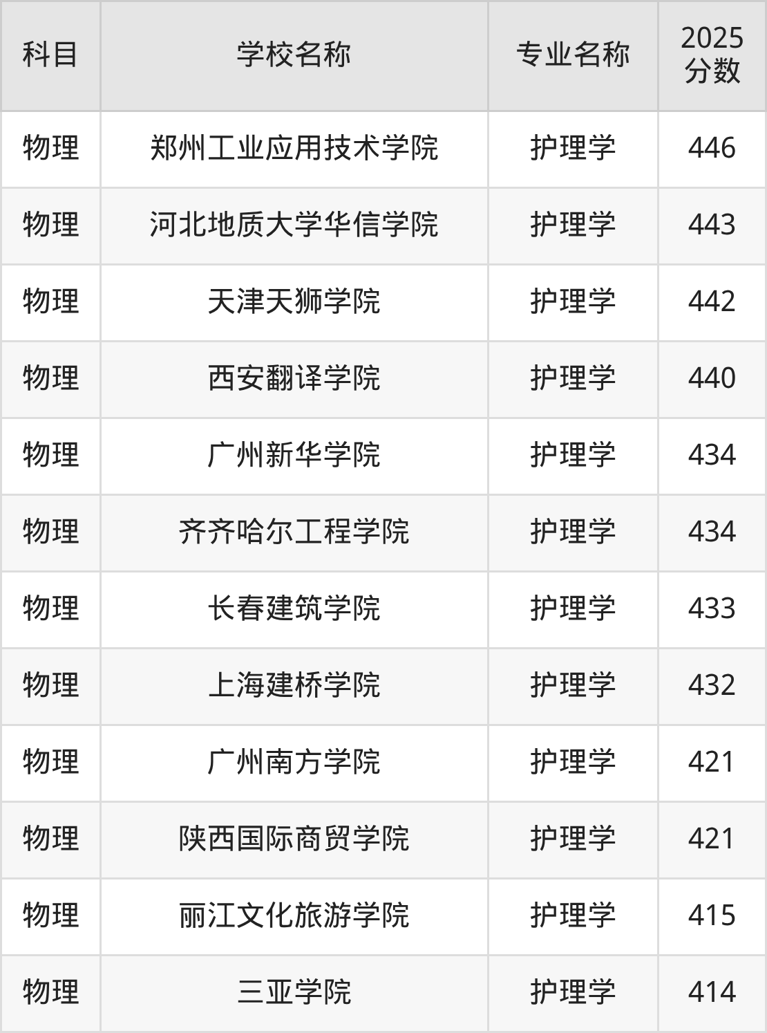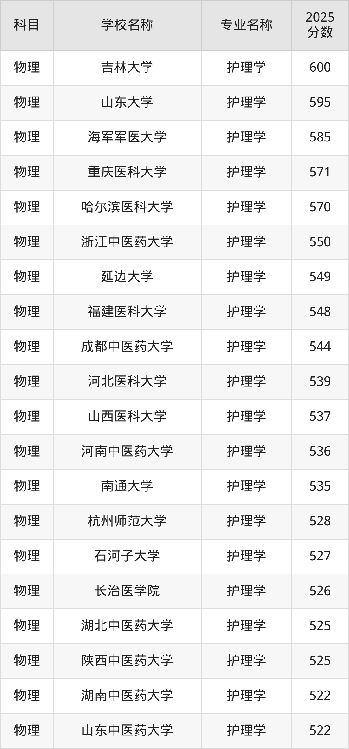 | 学校名称 | 专业名称 | 2025 分数 |