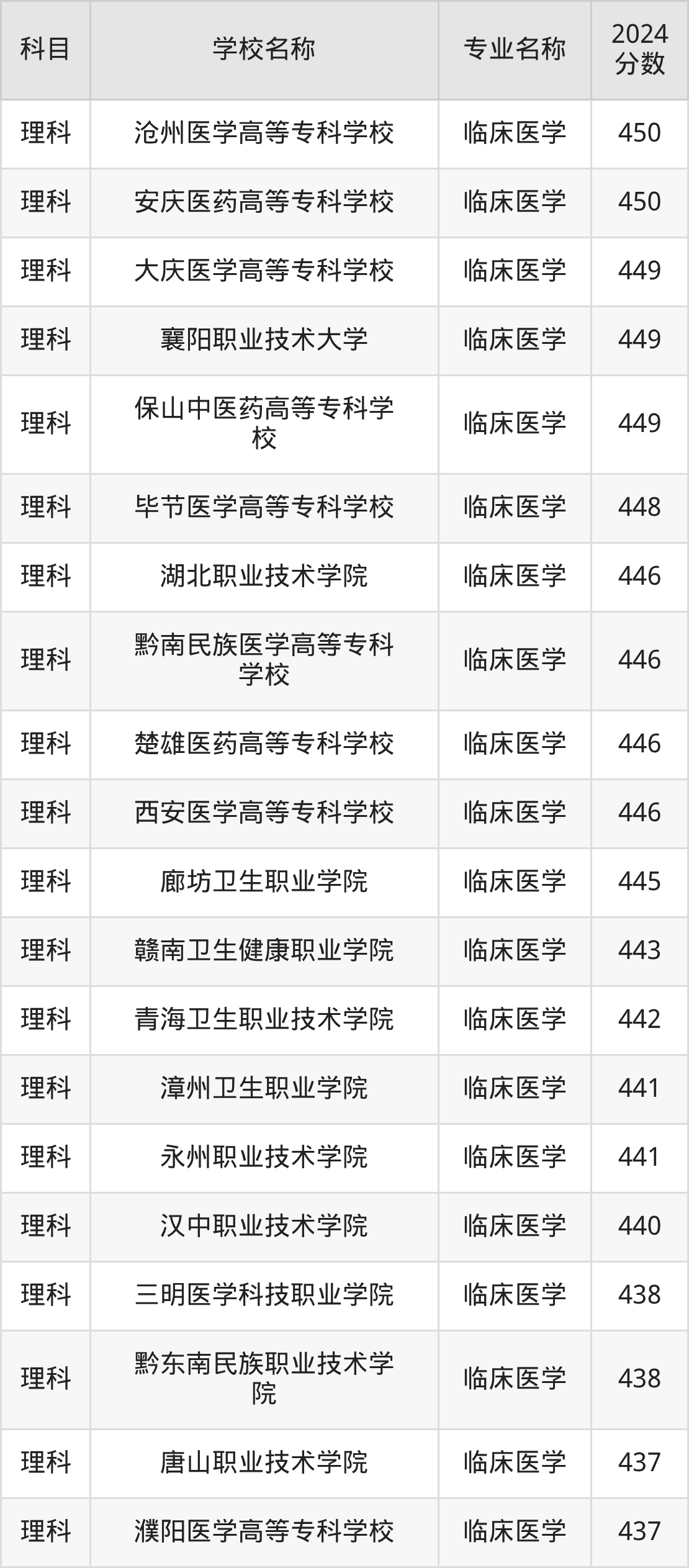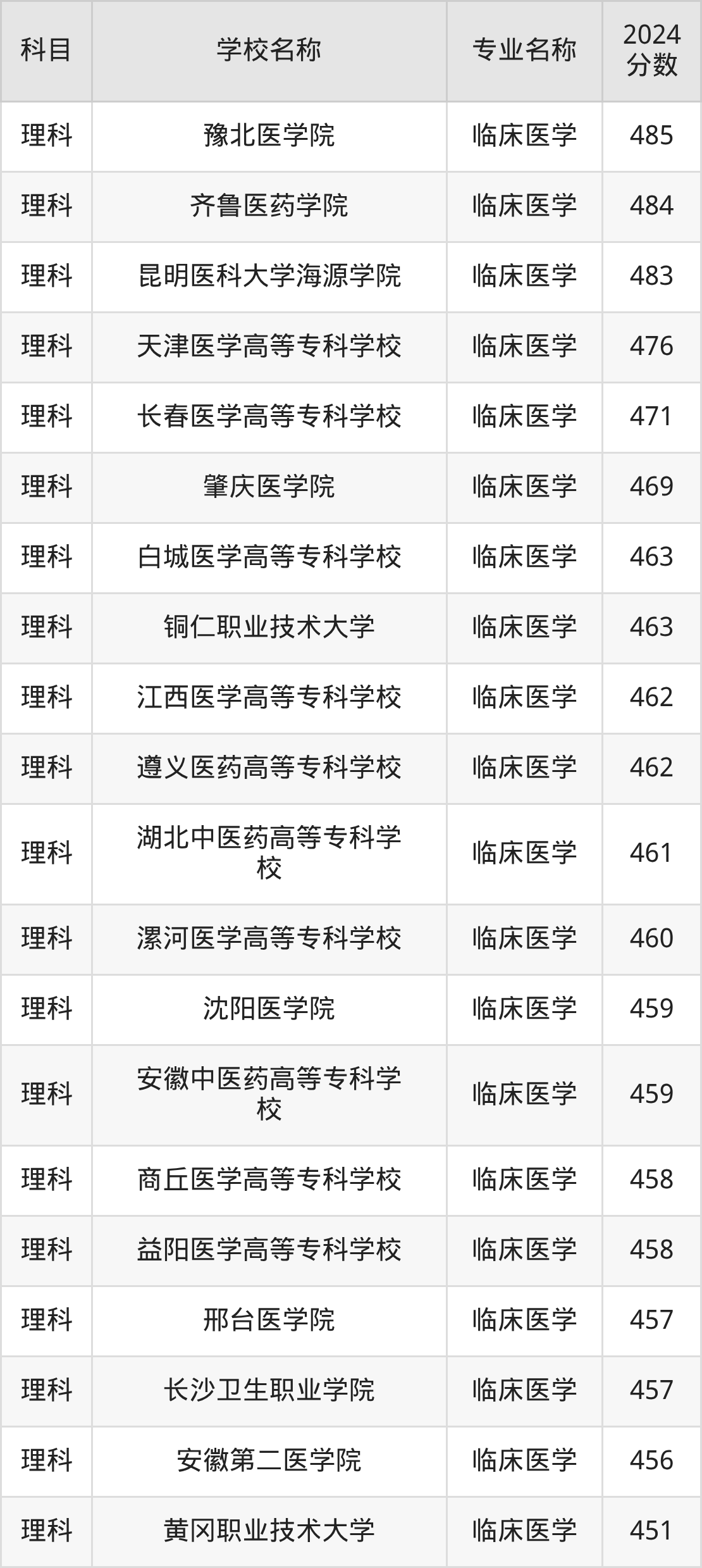 | 乐山职业技术学院(医 学) | 临床医学 | 461 |