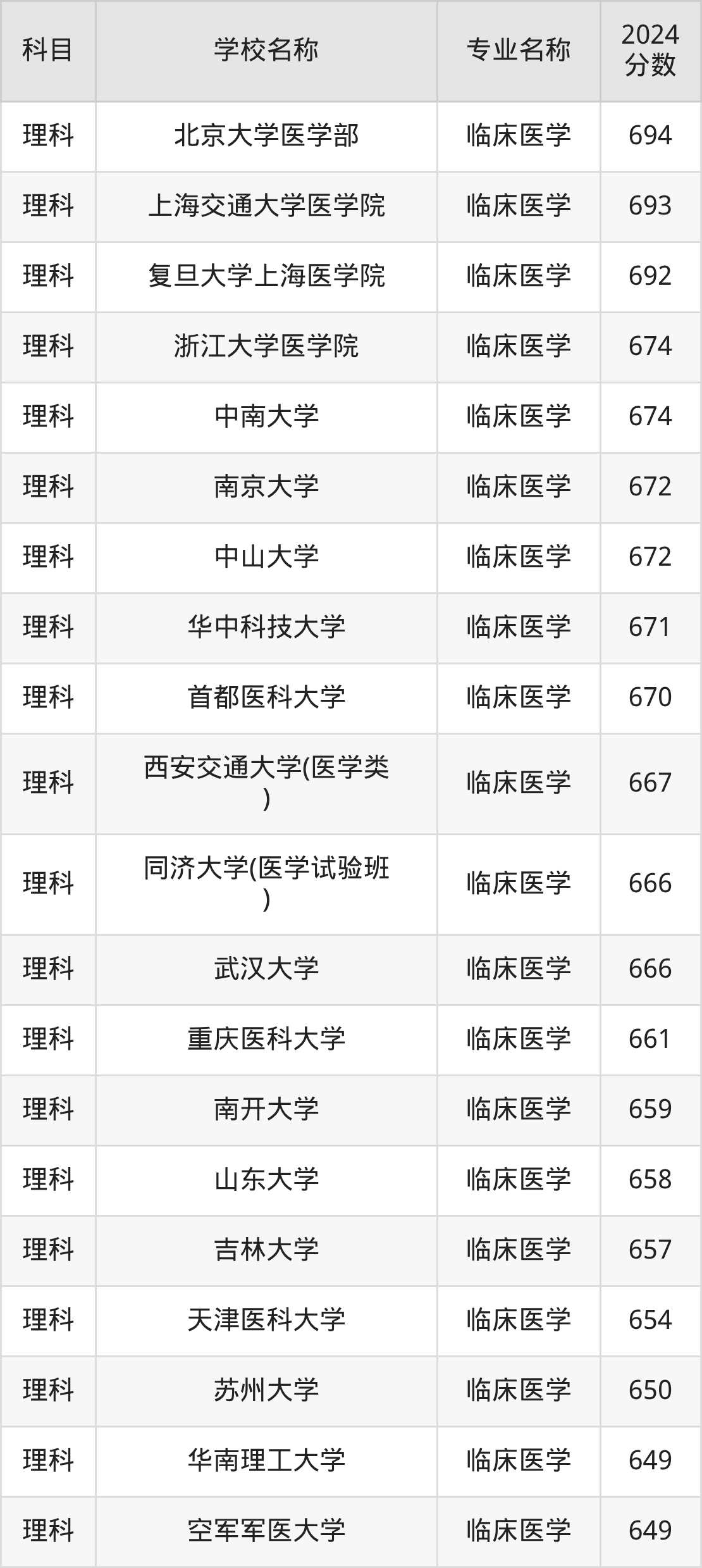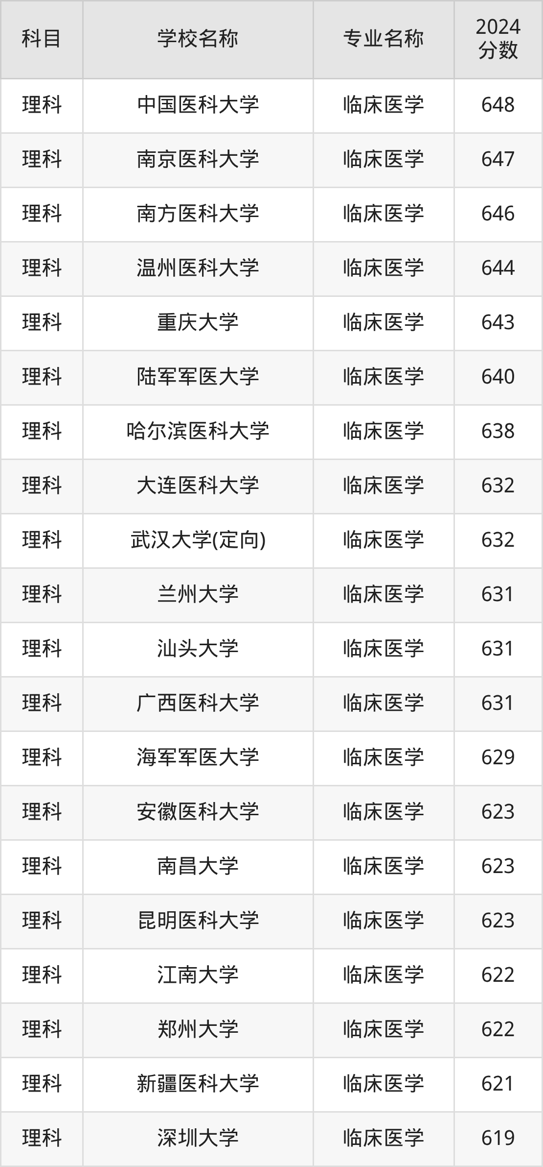 | 电子科技大学(沙河校 区)(医护类) | 临床医学 | 641 |