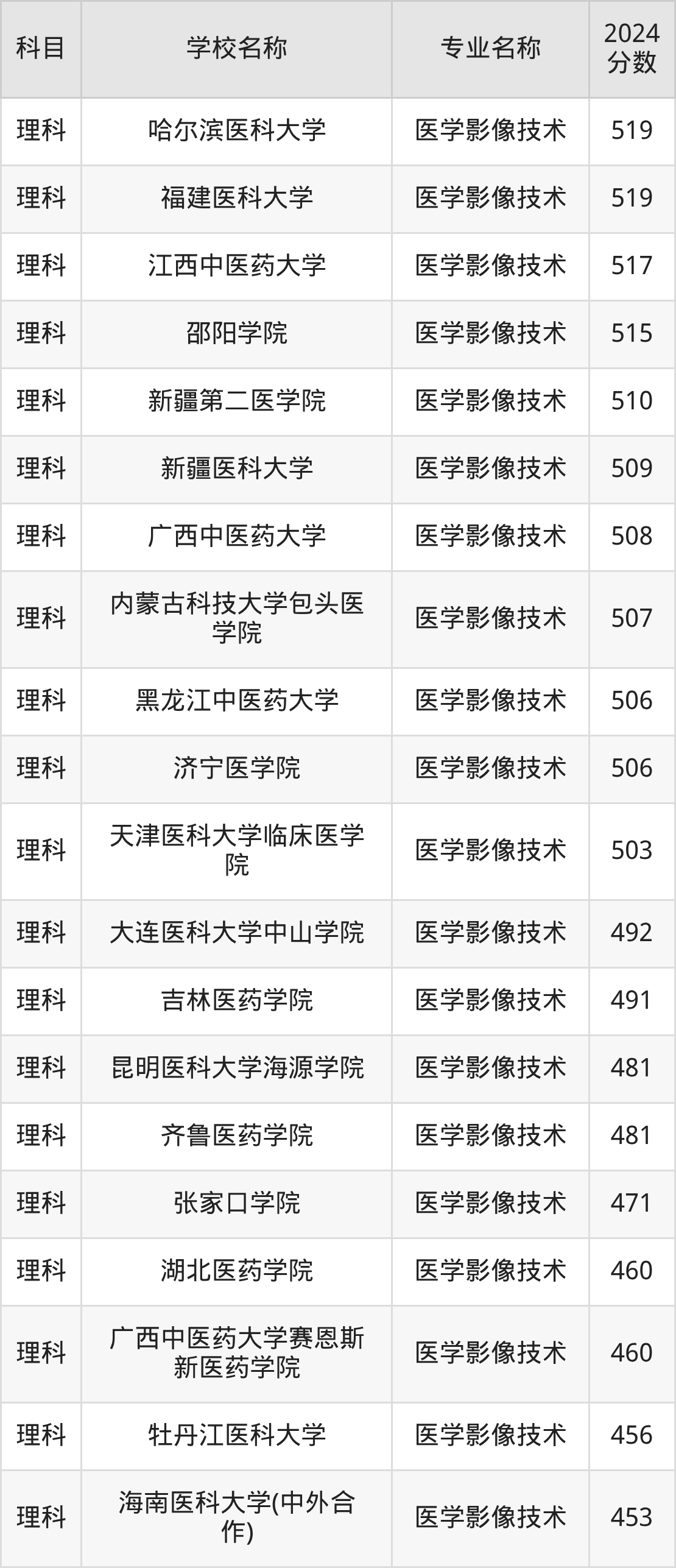 | 豫北医学院 | 医学影像技术 | 454 |