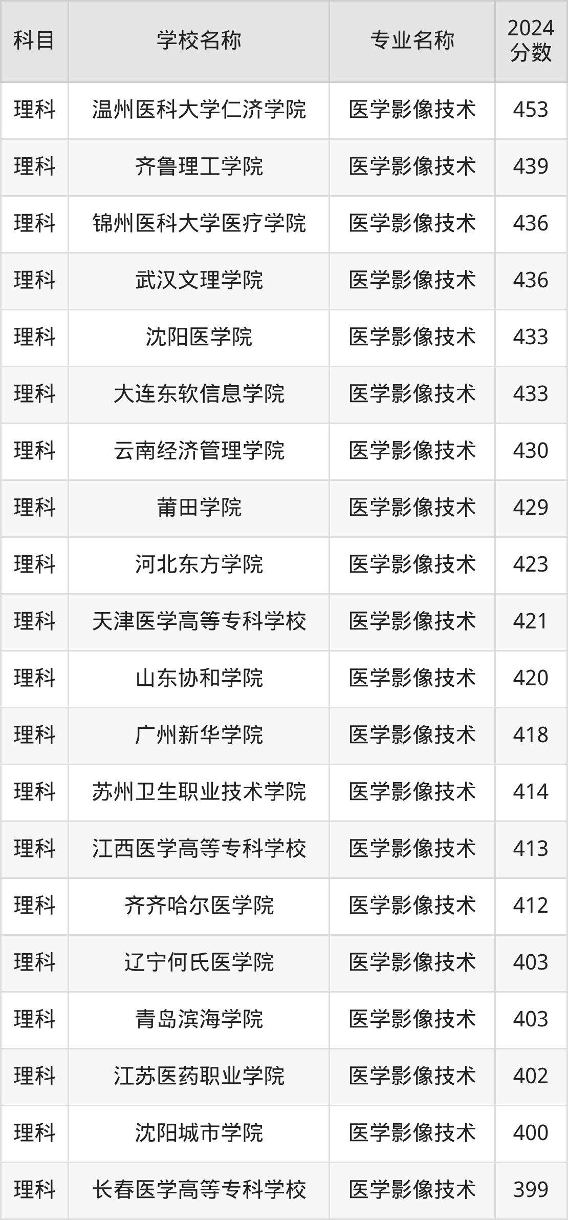 | 三门峡职业技术学院 | 医学影像技术 | 333 |