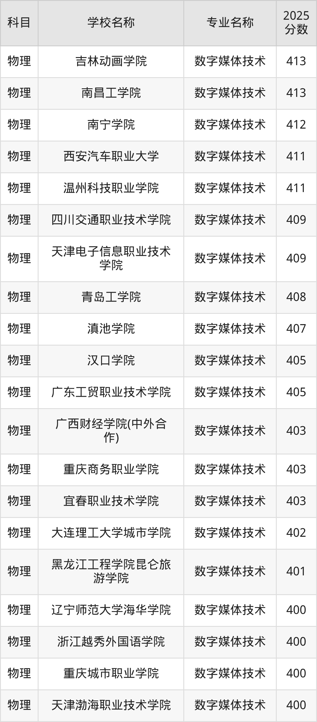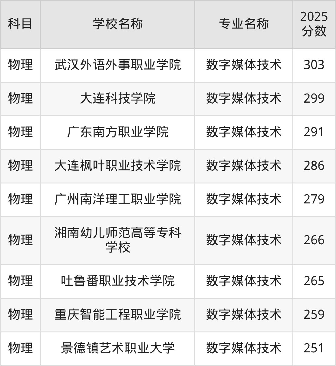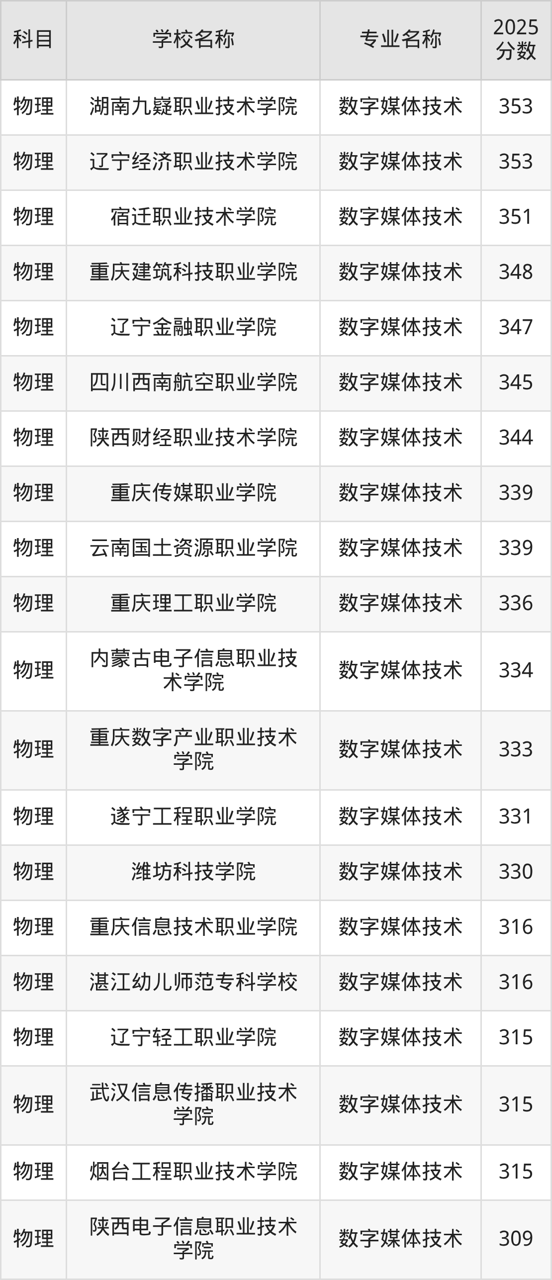 贵州高考物理组:数字媒体技术专业的最低分是213分~531分