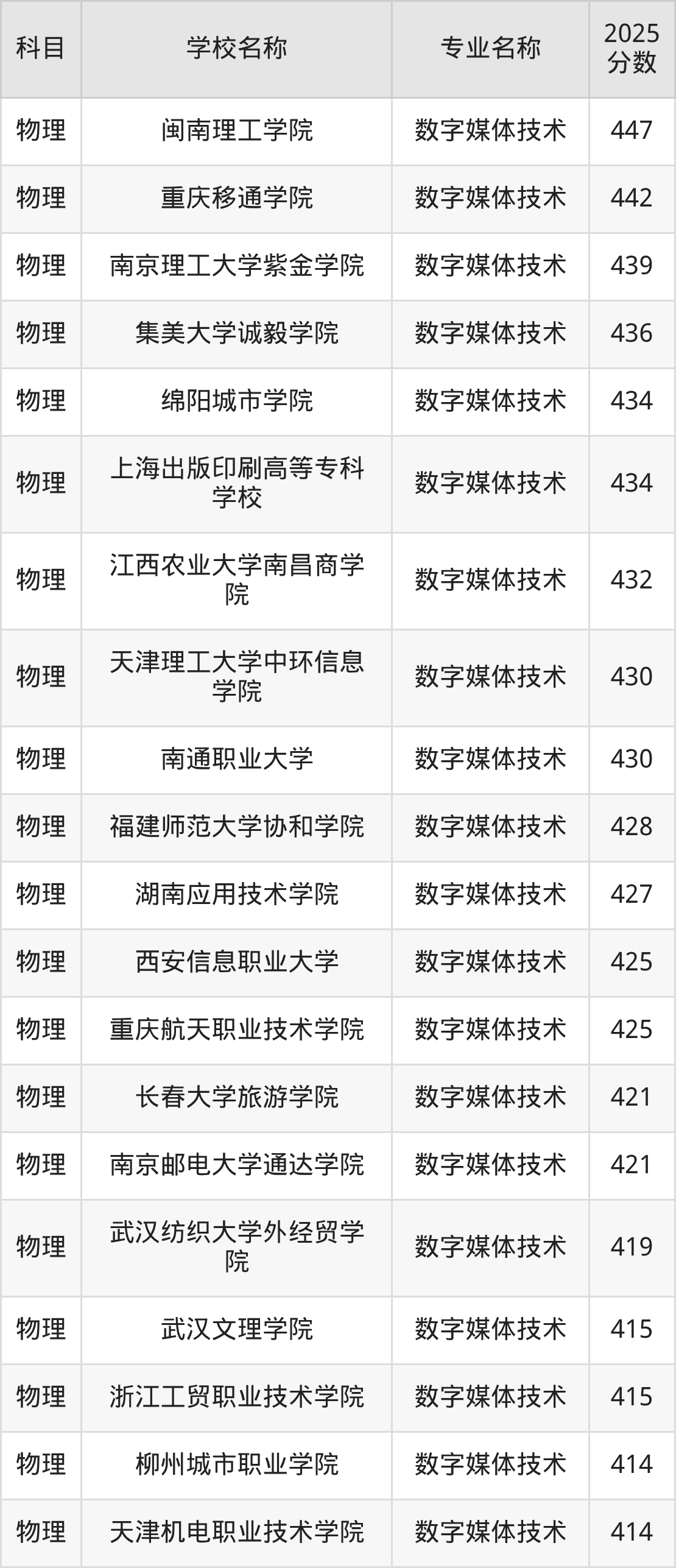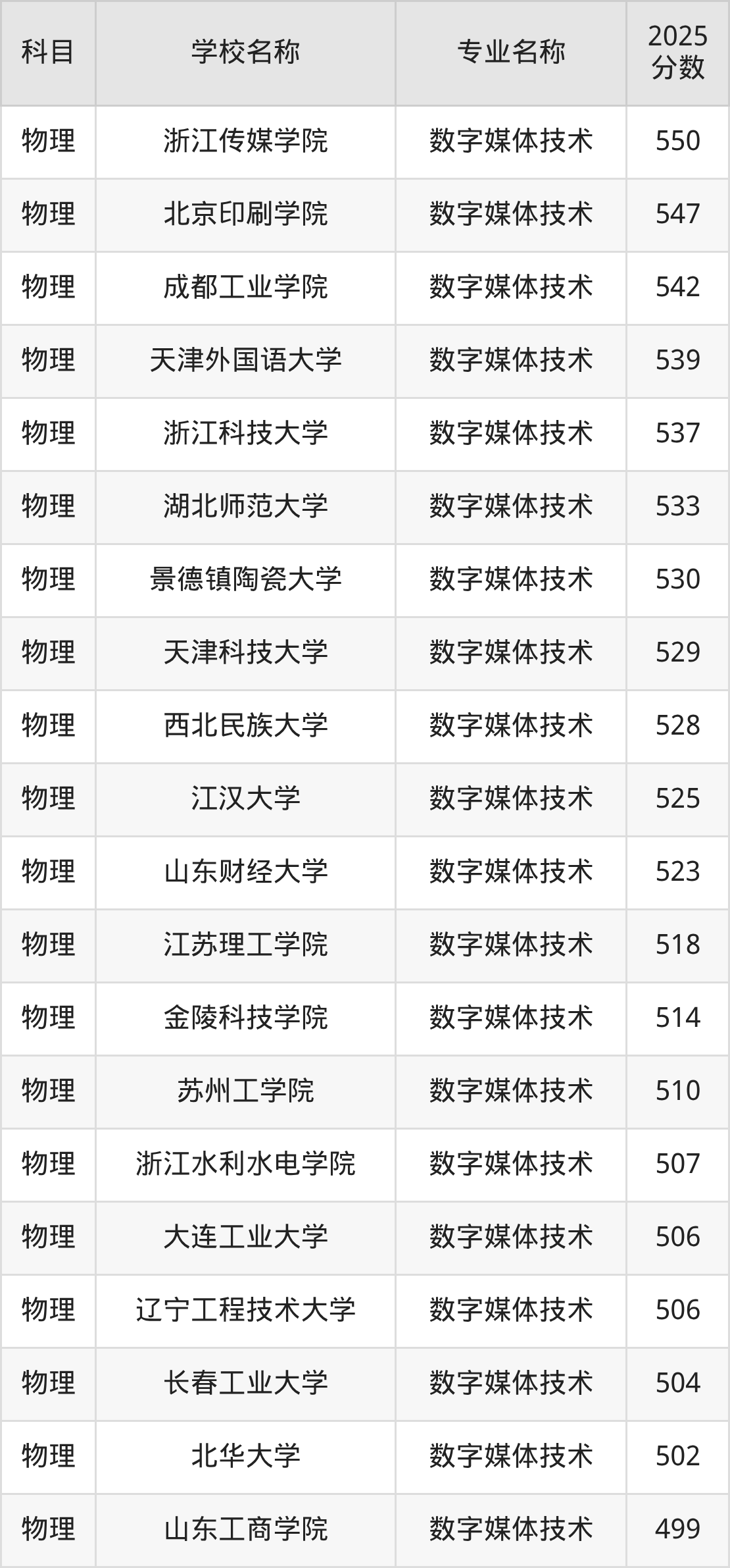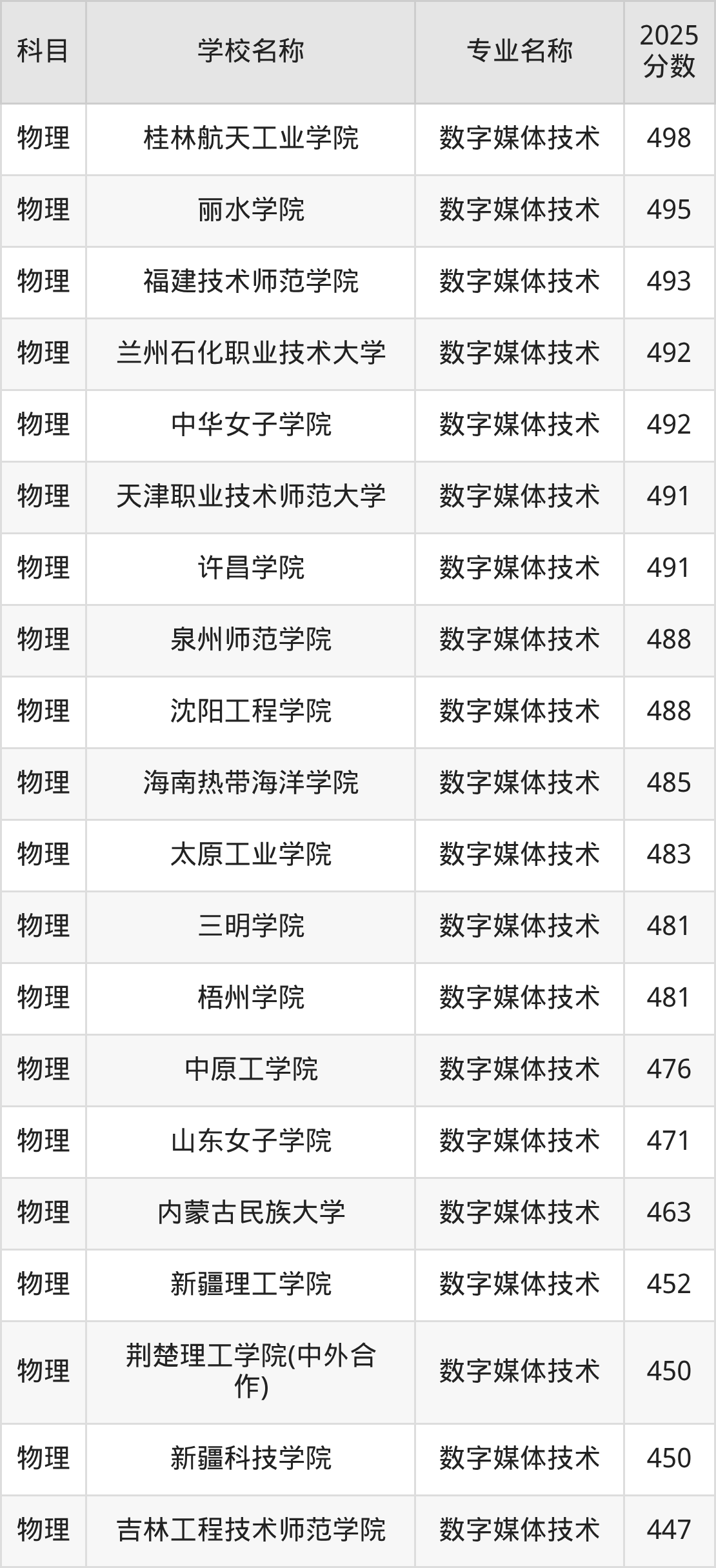 贵州高考物理组:数字媒体技术专业的最低分是213分~531分