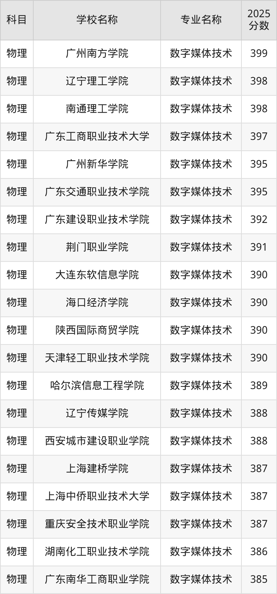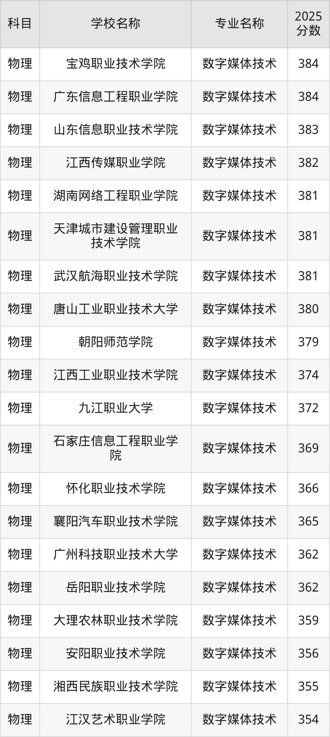 | 安顺职业技术学院 | 数字媒体技术 | 384 |