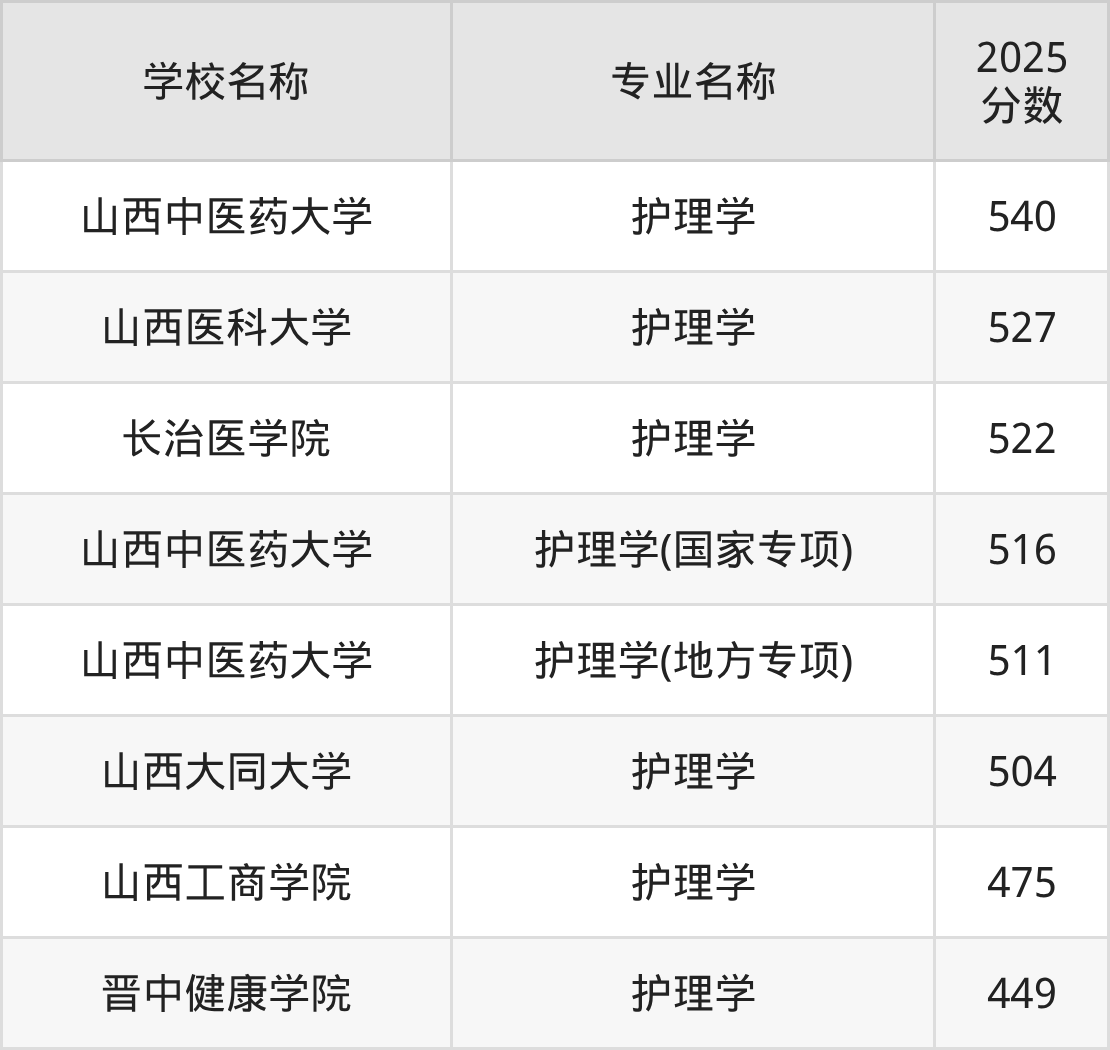 下文将为大家展示山西省大学护理学专业2025年在山西高考的最低录取分数线!