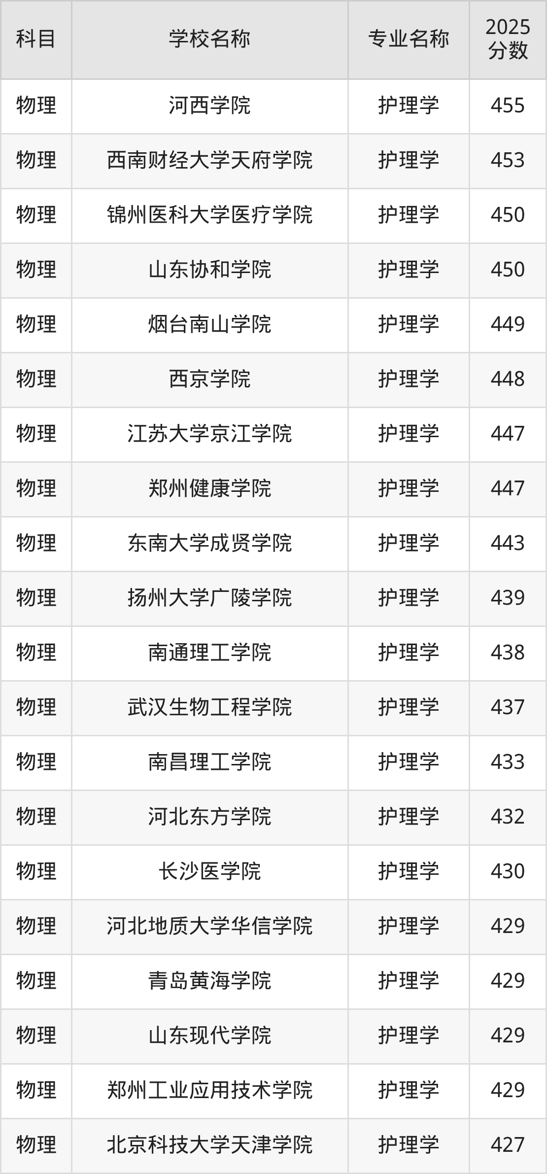 | 学校名称 | 专业名称 | 2025 分数 |
