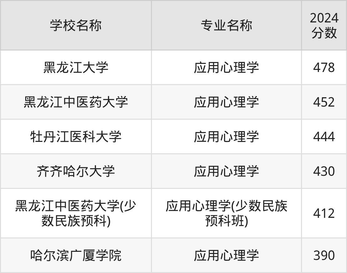 一、黑龙江应用心理学专业大学排名及分数线