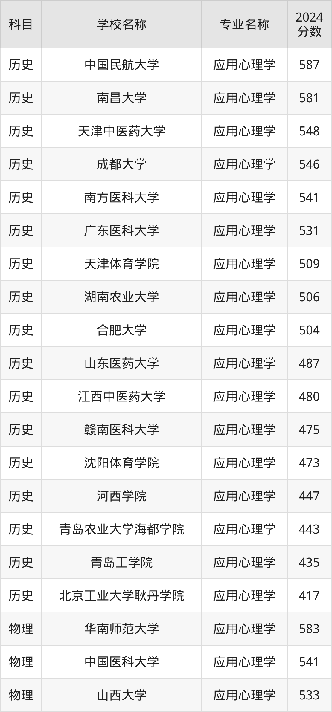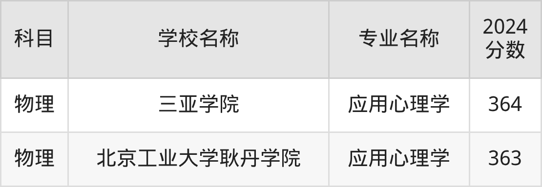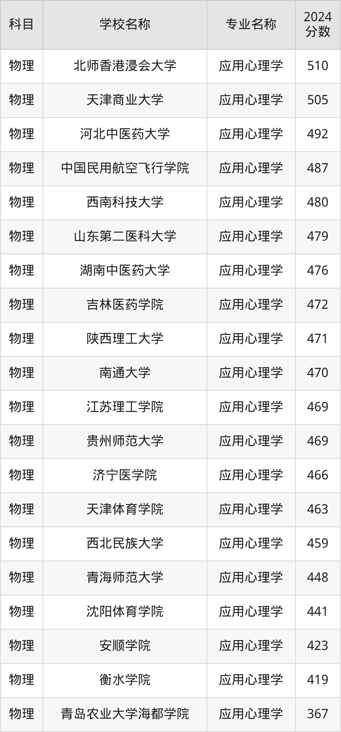| 牡丹江医科大学 | 应用心理学 | 460 |