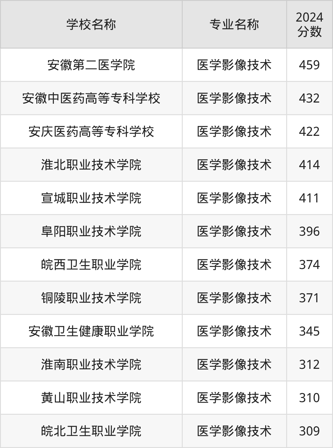 | 安徽卫生健康职业学院 | 医学影像技术 | 409 |