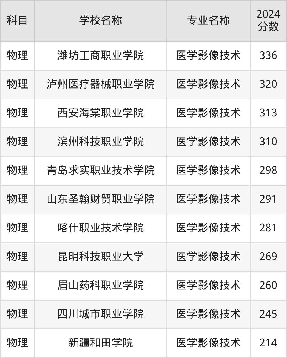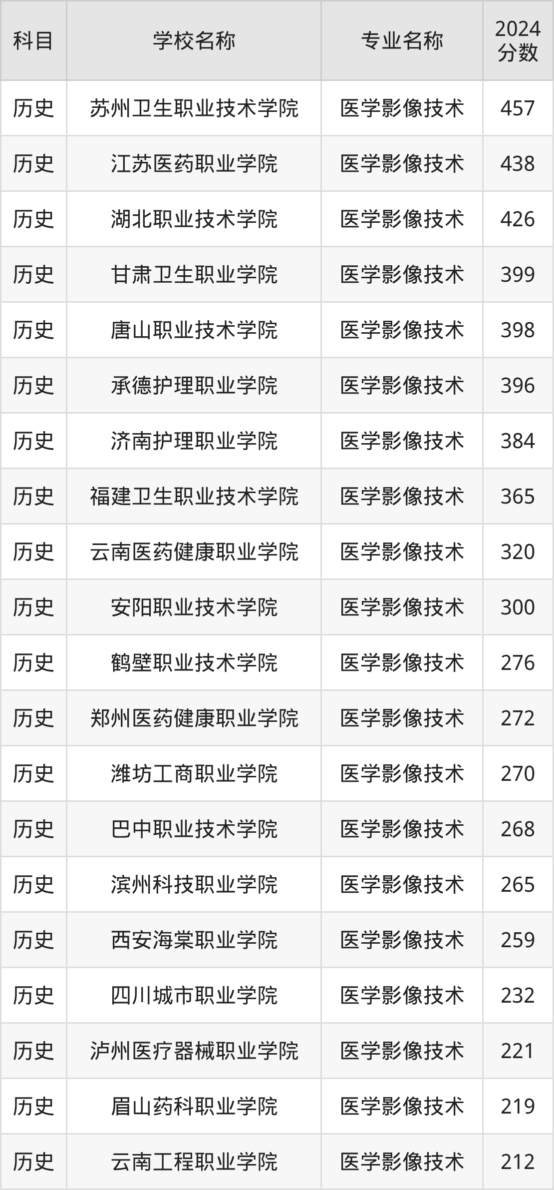 | 黄山职业技术学院 | 医学影像技术 | 378 |