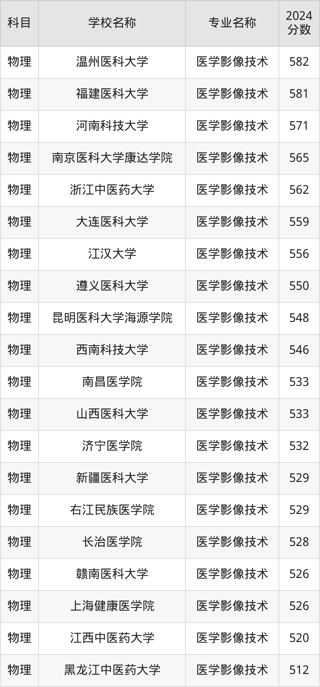 圆梦小编根据安徽2024年高考物理组专业分,将开设了医学影像技术专业且位于安徽省内的大学按照“录取分”从高到低排序,得出了以上榜单。