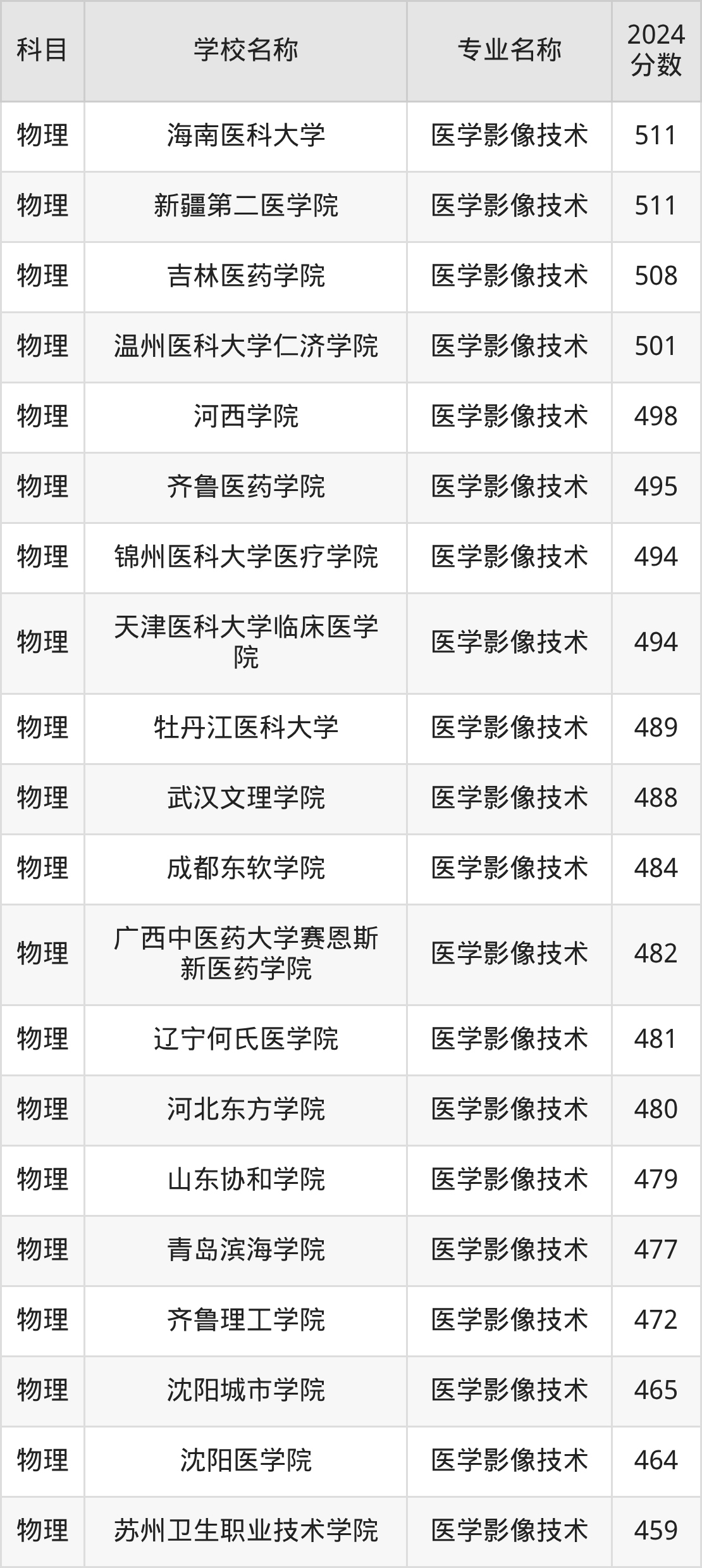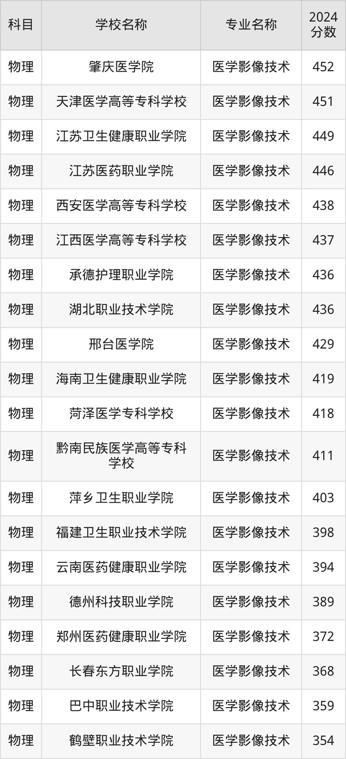 | 阜阳职业技术学院 | 医学影像技术 | 402 |