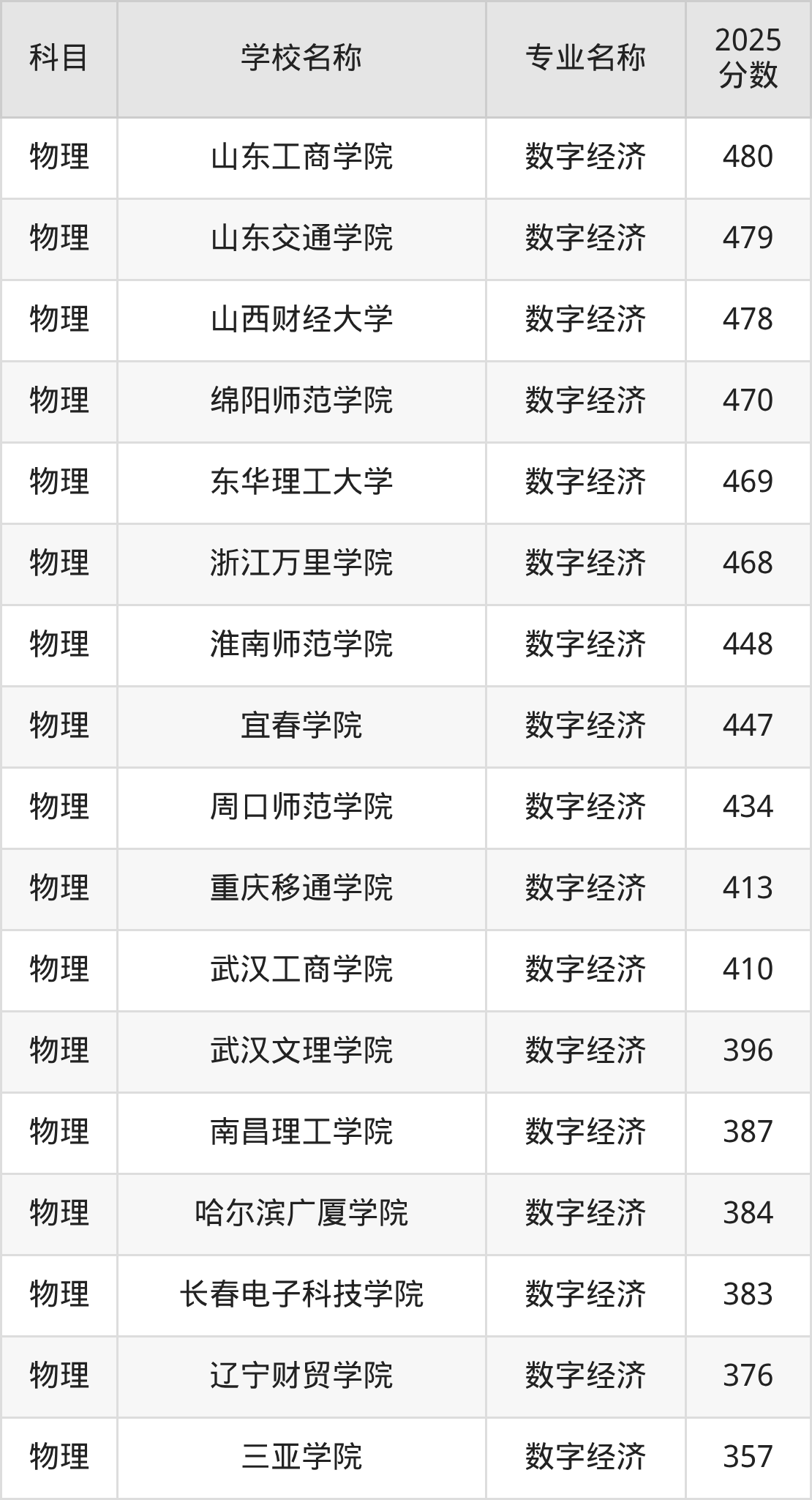 下文将为大家展示内蒙古自治区大学数字经济专业2025年在内蒙古高考的最低录取分数线!