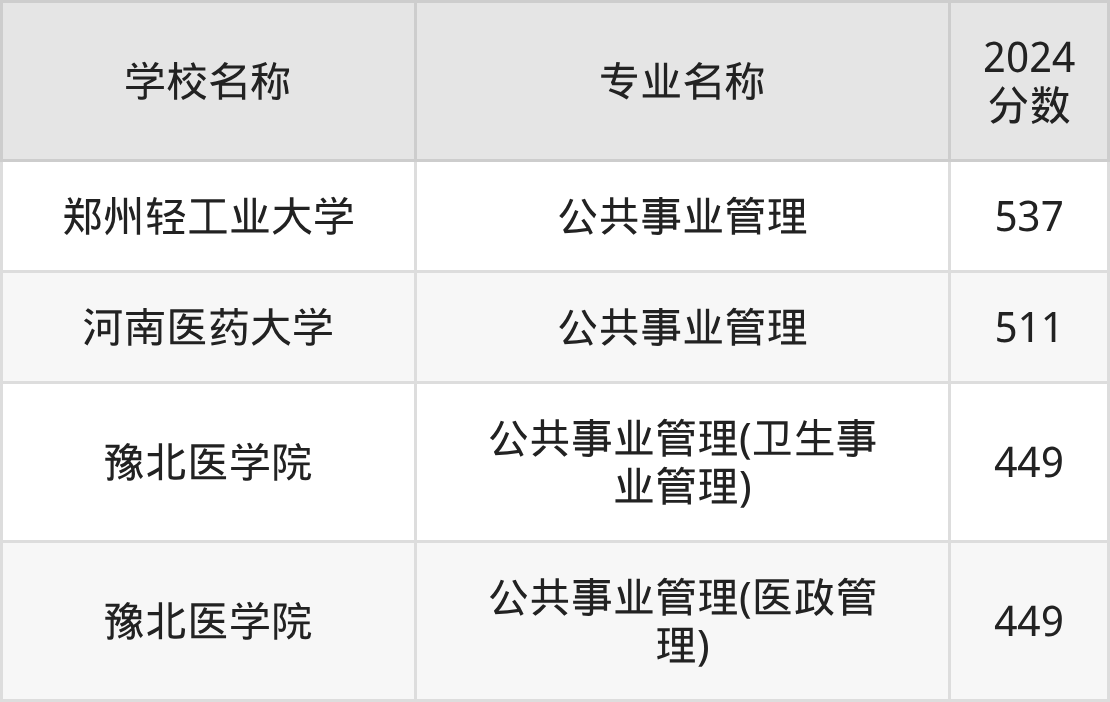 下文将为大家展示河南省大学公共事业管理专业2024年在河南高考的最低录取分数线!