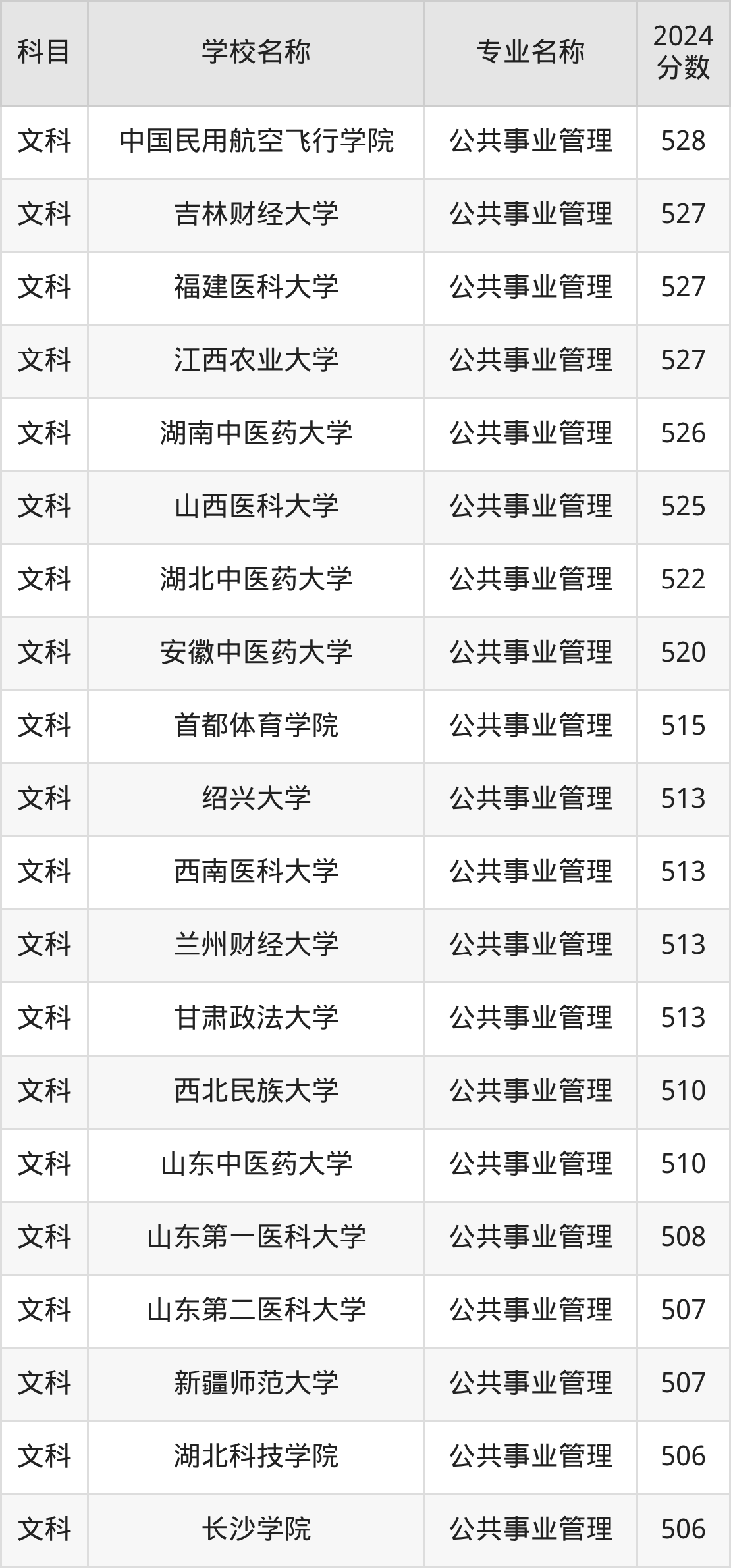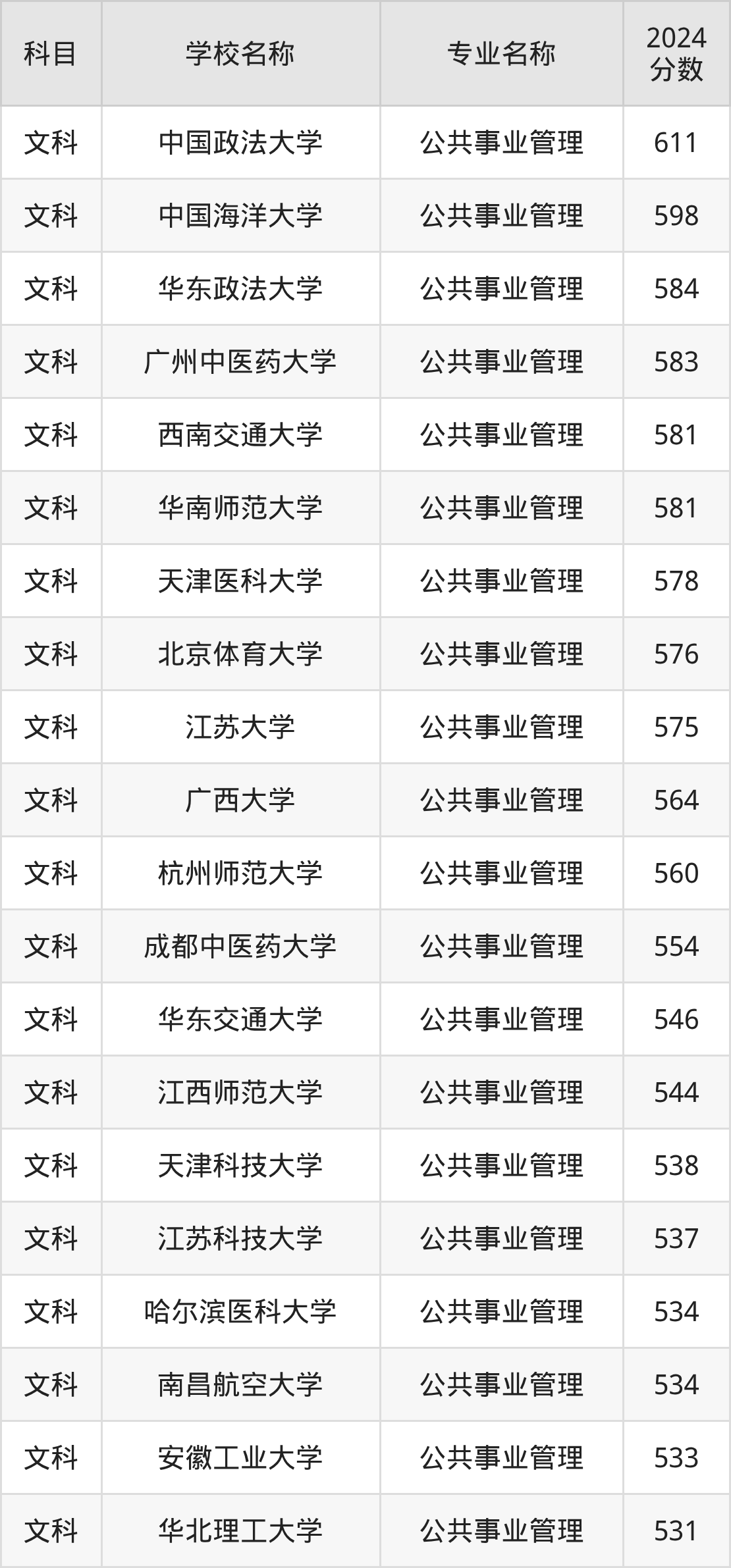 通过上文大家可以知晓,在河南省内招公共事业管理专业的院校数量较少,所以下文将为2026届高考生继续展示:省外大学的公共事业管理专业2024年在河南高考的录取情况,包含中国政法大学、中国海洋大学、华东政法大学、广州中医药大学、西南交通大学。